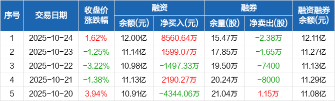 扬杰科技:融资净买入8560.64万元,融资余额12亿元(10-24)