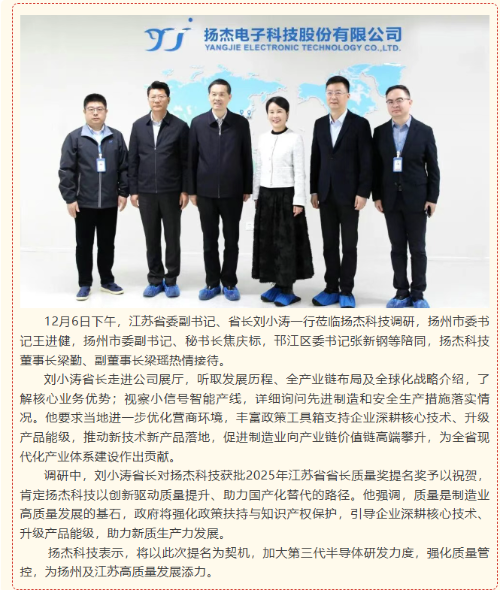 江苏省委副书记、省长刘小涛一行莅临扬杰科技调研指导