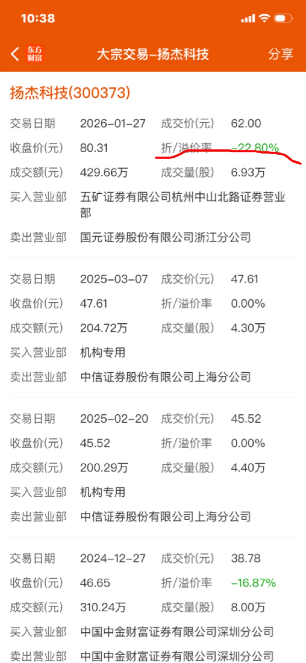 $扬杰科技(SZ300373)$ 没有看到这个溢价。天啊还折价22%,这是多大的利空啊。这是大股东转融通卖出。不跌到62元都不收跌!