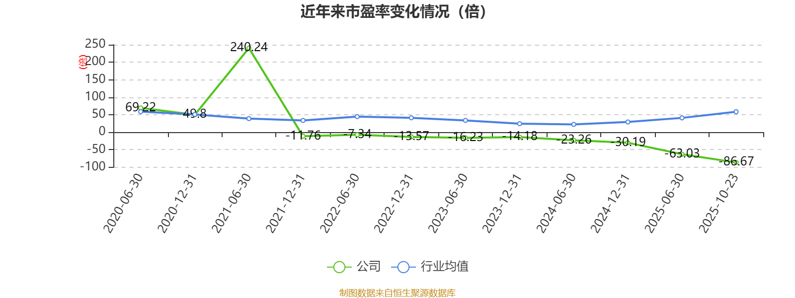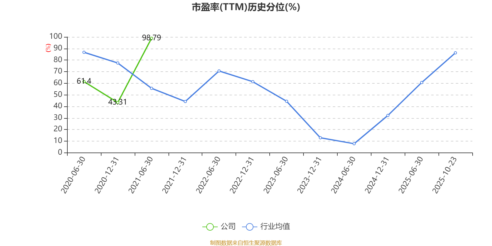 市盈率、市净率为负时,不显示当期分位数,会导致折线图中断。