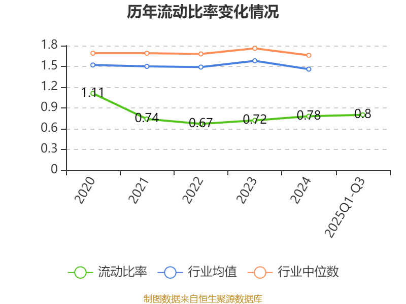 2025年前三季度,公司流动比率为0.8,速动比率为0.76。