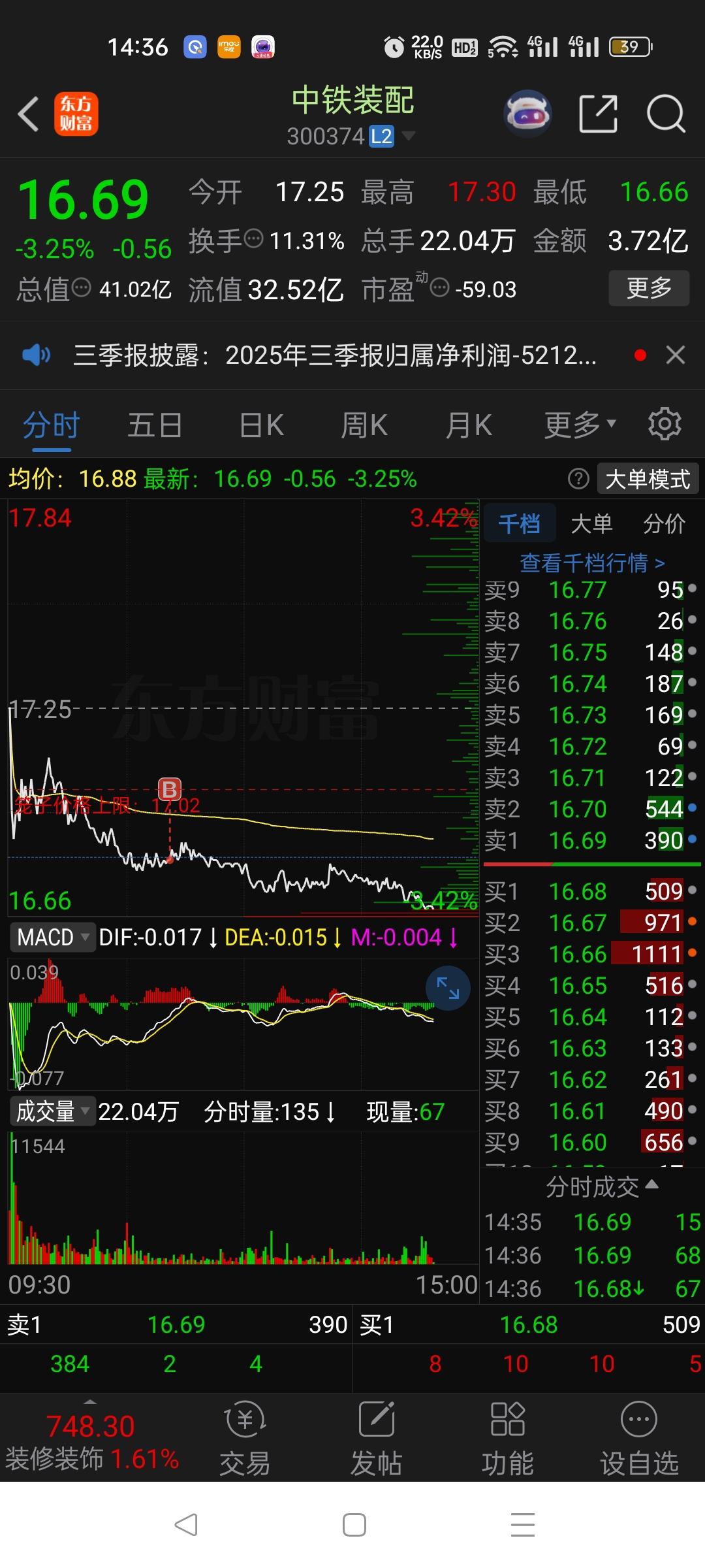$中铁装配(SZ300374)$ 尾盘不买了,等跌到16附近再买一点做t