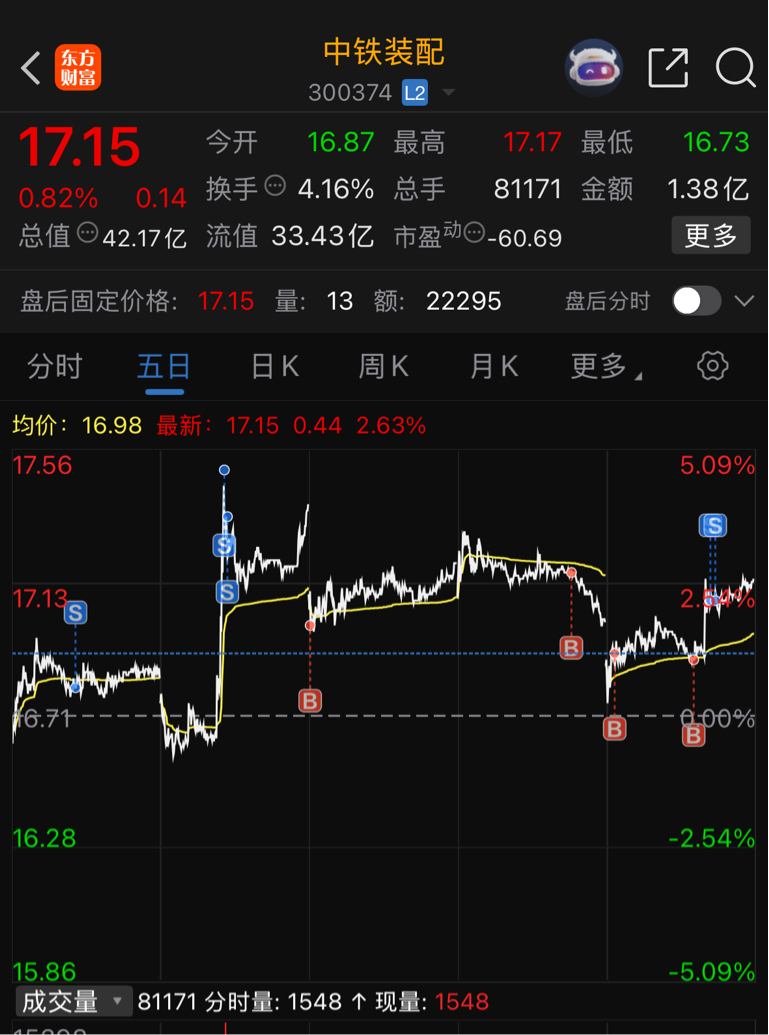 $中铁装配(SZ300374)$ 闲着也是闲着,做做T吧。