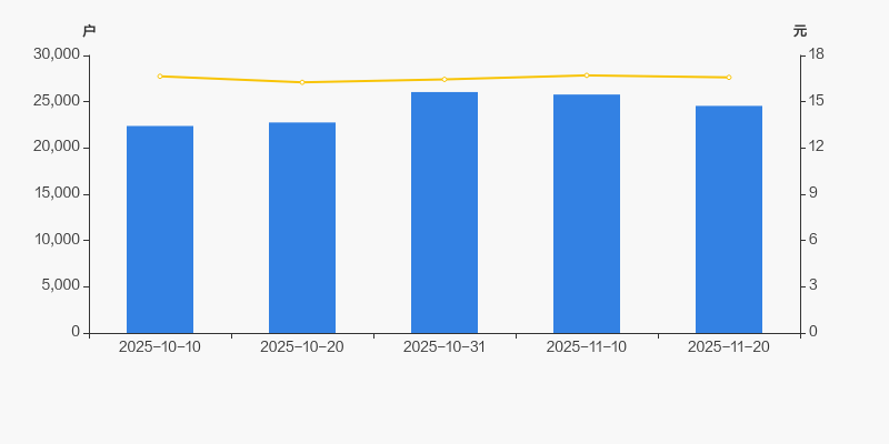 2025年10月10日至今,公司股东户数有所增长,区间涨幅为9.70%。2025年10月10日至2025年11月20日区间股价下降0.42%。