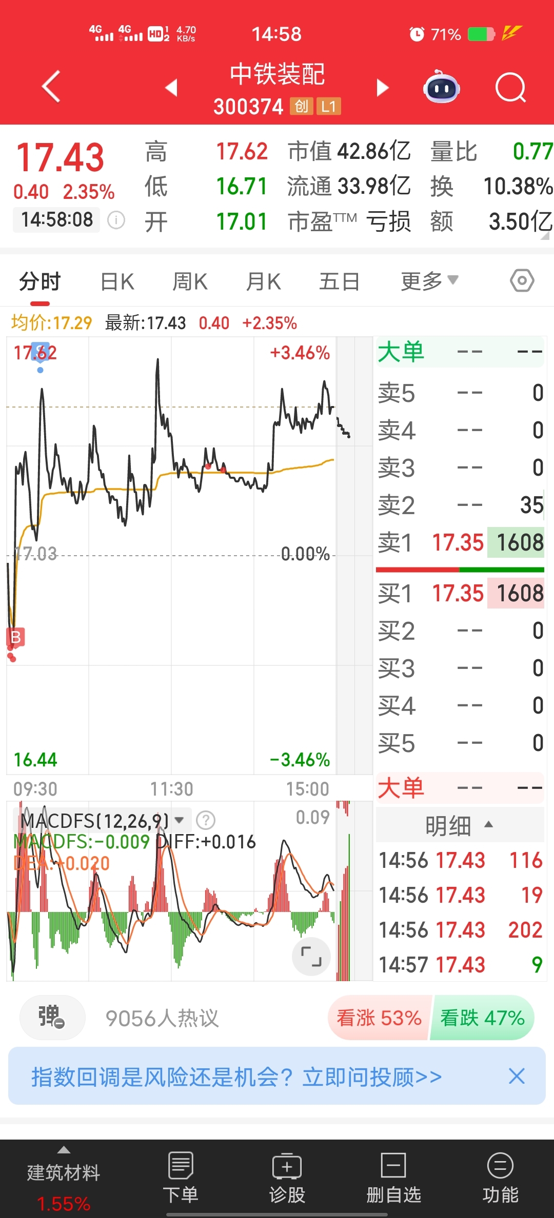 $中铁装配(SZ300374)$ 还是有点弱啊!