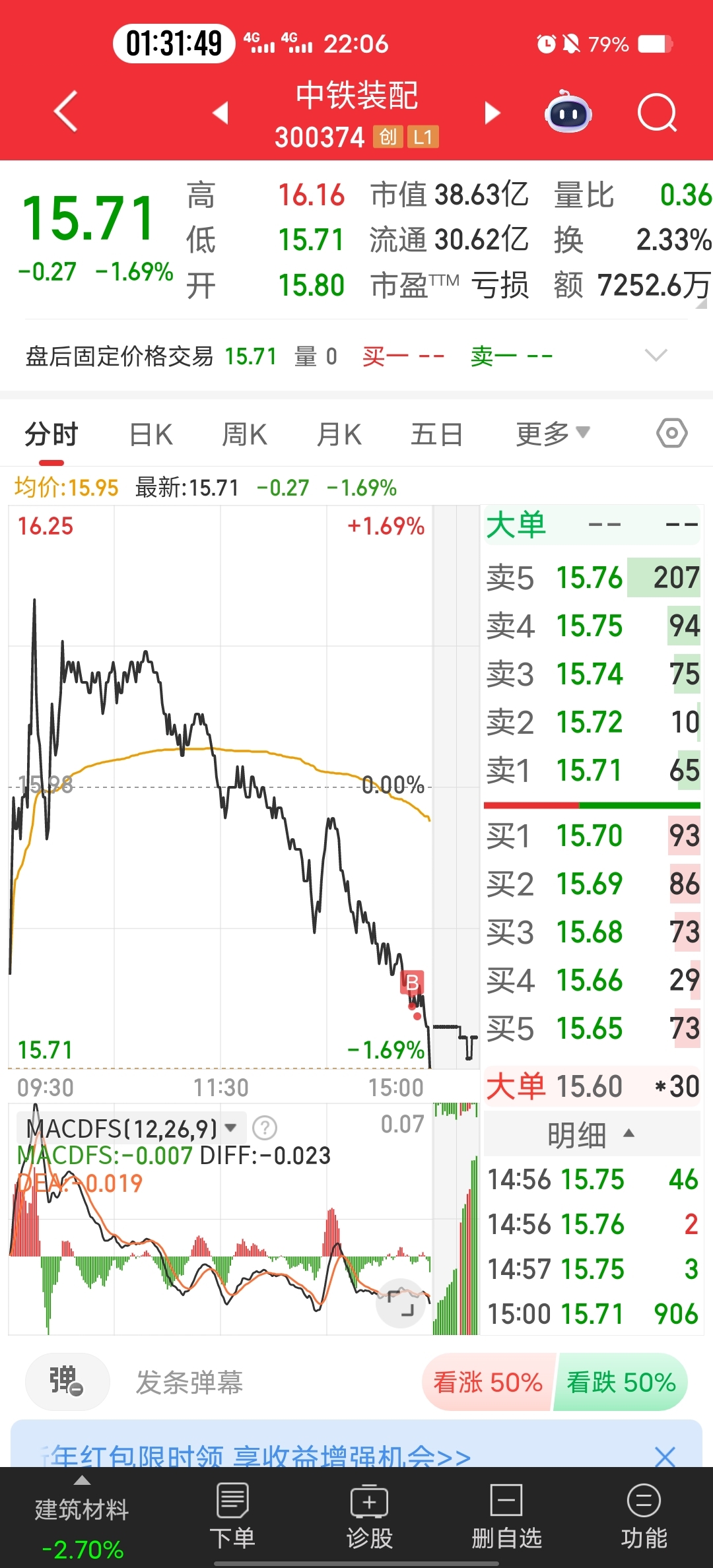 $中铁装配(SZ300374)$ 希望明天主力给点力