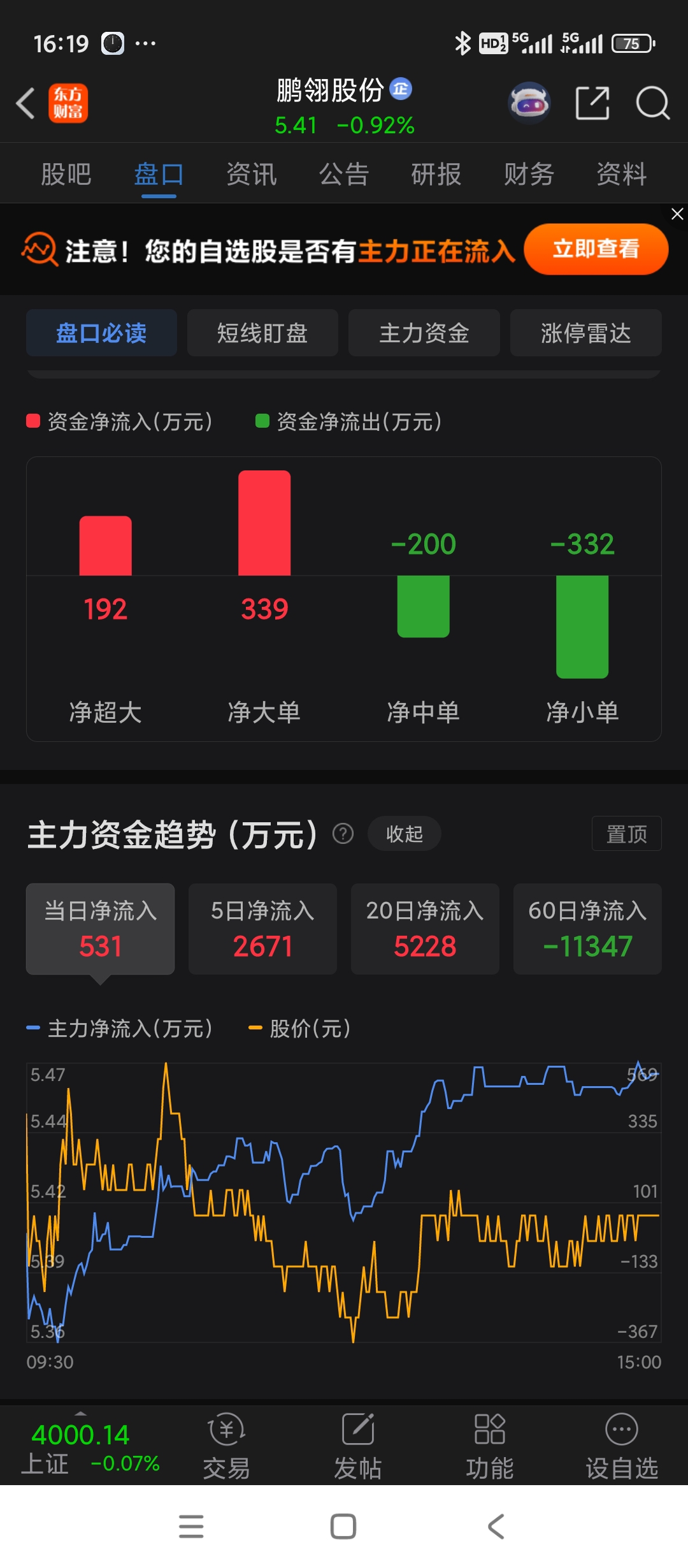 $鹏翎股份(SZ300375)$ 主力进货来了。流入那么多的资金。却拉了一个长绿柱。今天这一跌,吓破了多少胆???