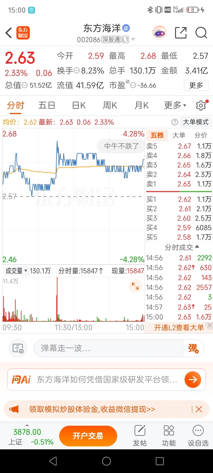 看来我选择东方海洋还是对的!!看看尾盘!!