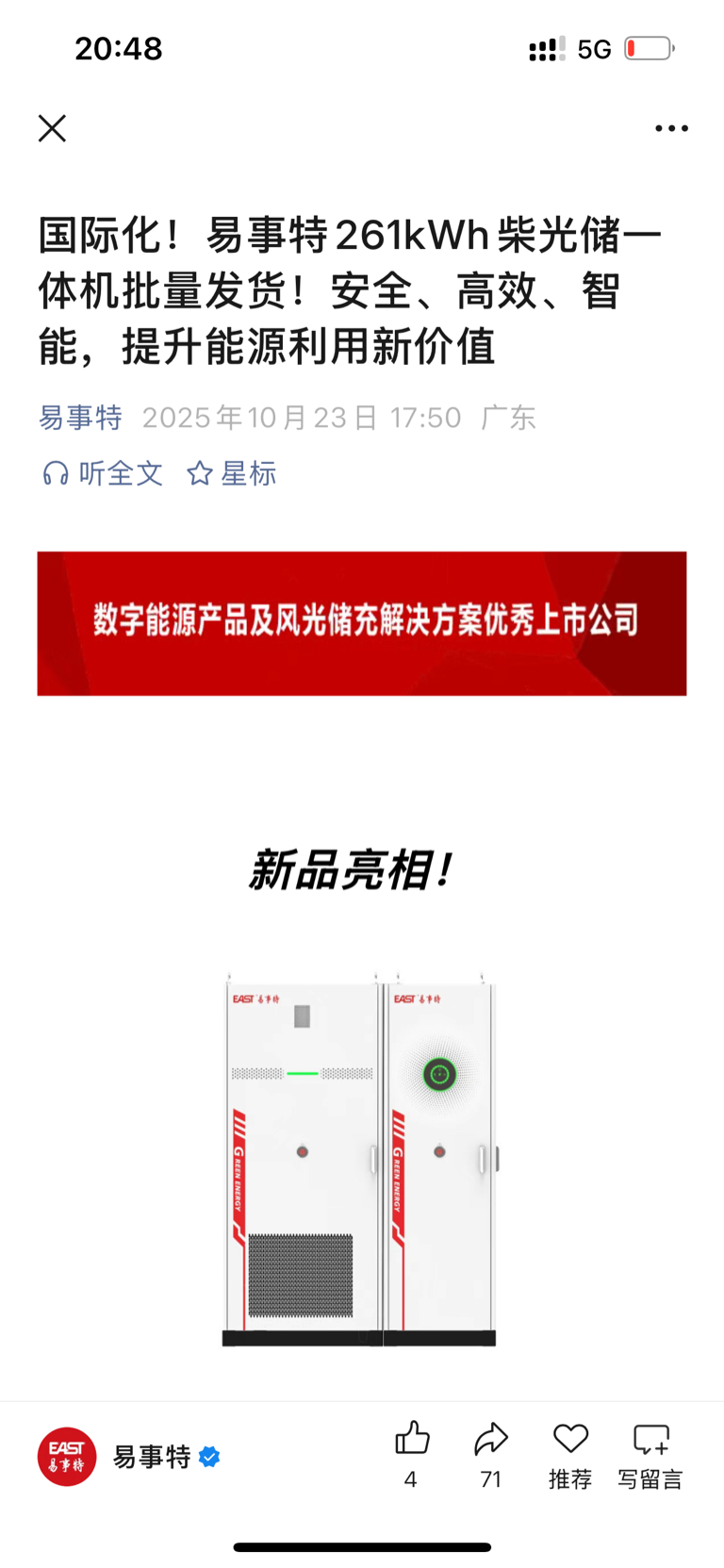 $ST易事特(SZ300376)$ 批量发货。就问大家,第四季度,明年收入会不会大涨