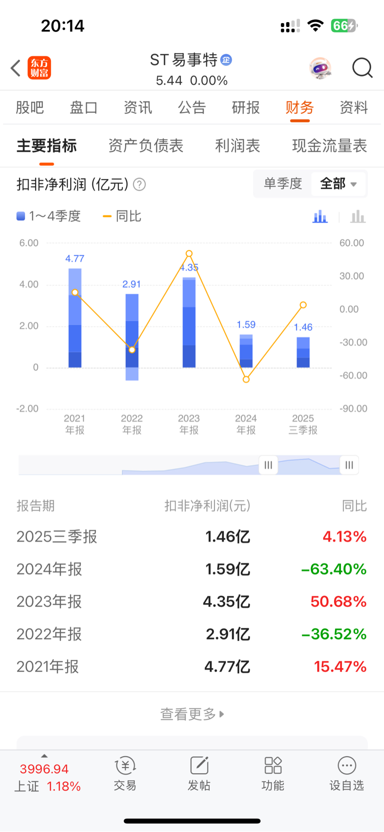 $ST易事特(SZ300376)$ 扣非净利润是增长的,只不过拿了几千万出去不知道干什么去了!应该是赔付了。明天还是几分钱玩一天。
