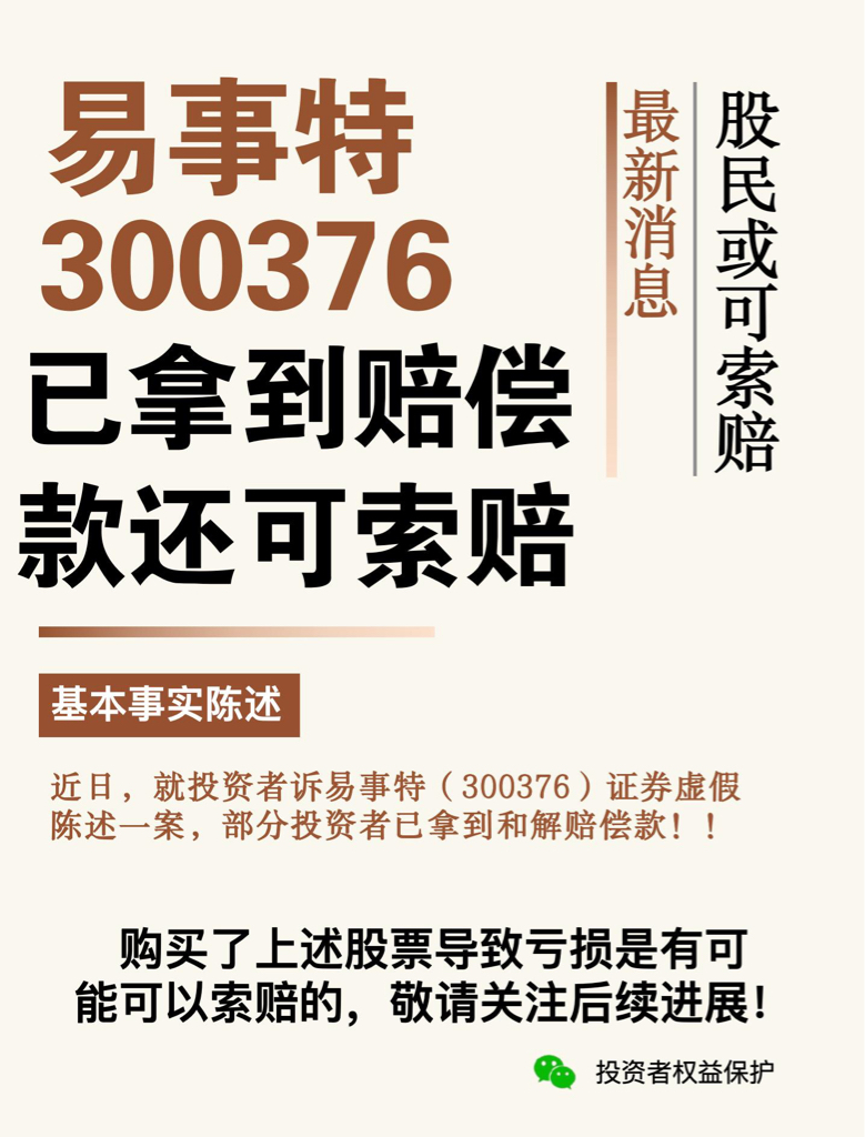 【索赔条件】于2018年3月15日至2023年5月11日之间买入易事特,并于20