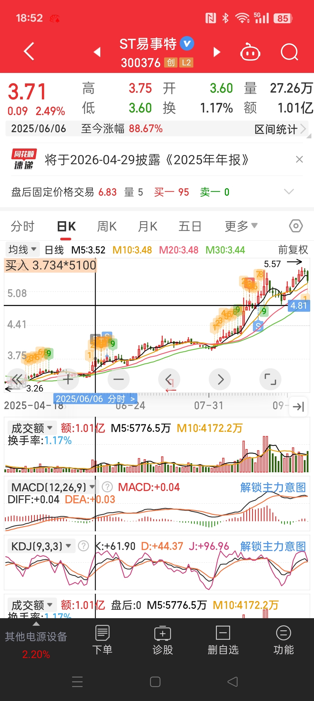 $ST易事特(SZ300376)$ 留了100股到现在