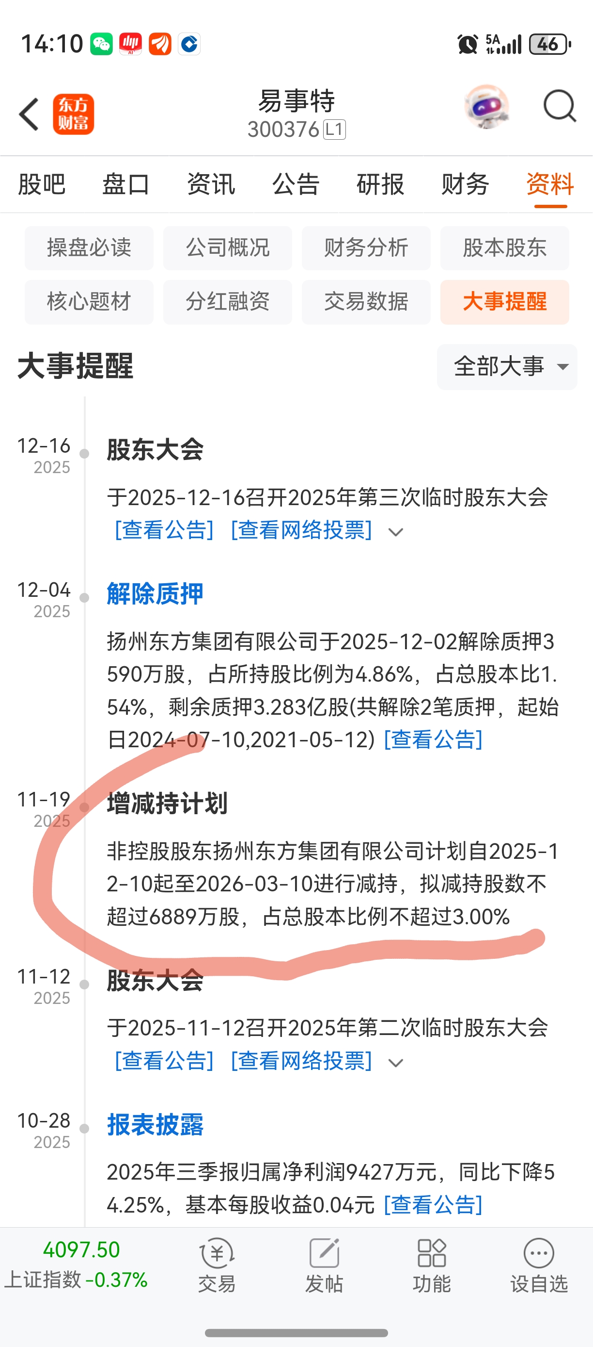 快了,还有六千万股在三月前减完。