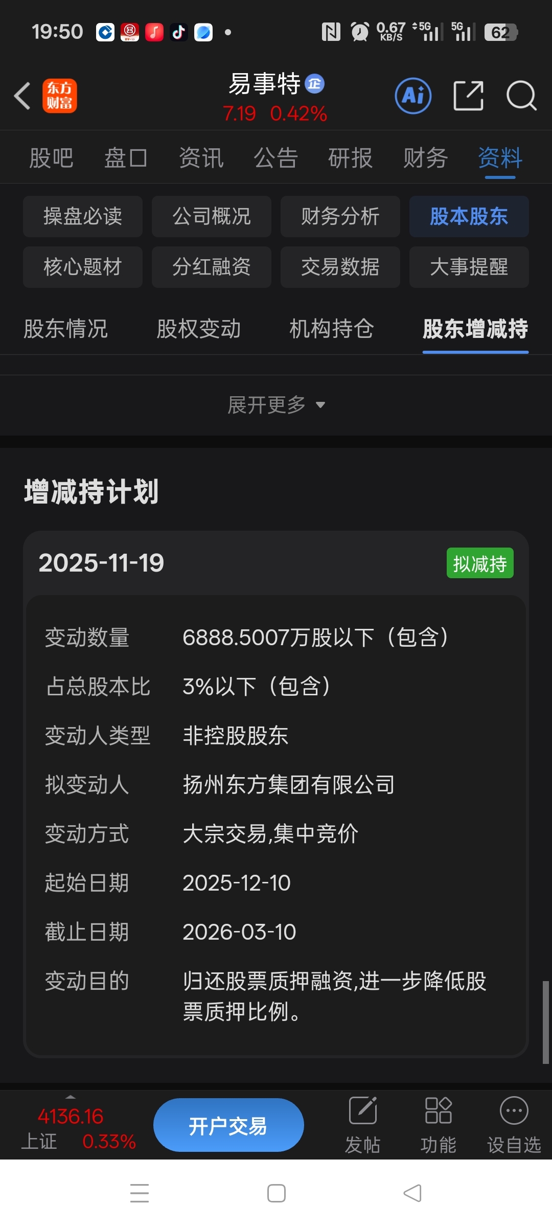 $易事特(SZ300376)$ 这个东方减持还没完涨不了,唉撤退