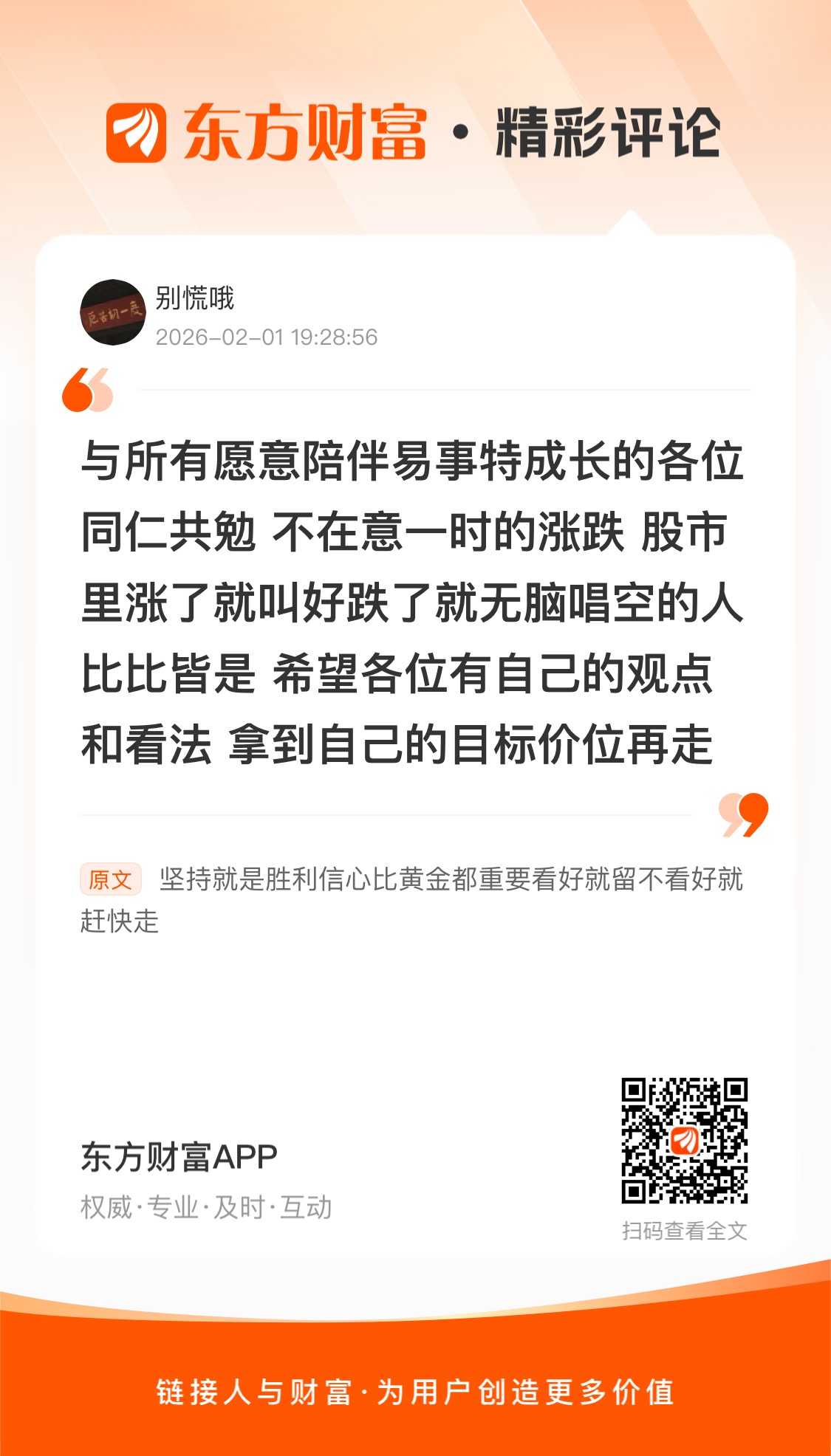 温馨提示: 1.根据《证券法》规定,禁止编造、传播虚假信息或者误导性信息,扰乱证券市场;2.用户在本社区发表的所有资料、言论等仅代表个人观点,与本网站立场无关,不对您构成任何投资建议。用户应基于自己的独立判断,自行决定证券投资并承担相应风险。《东方财富社区管理规定》
