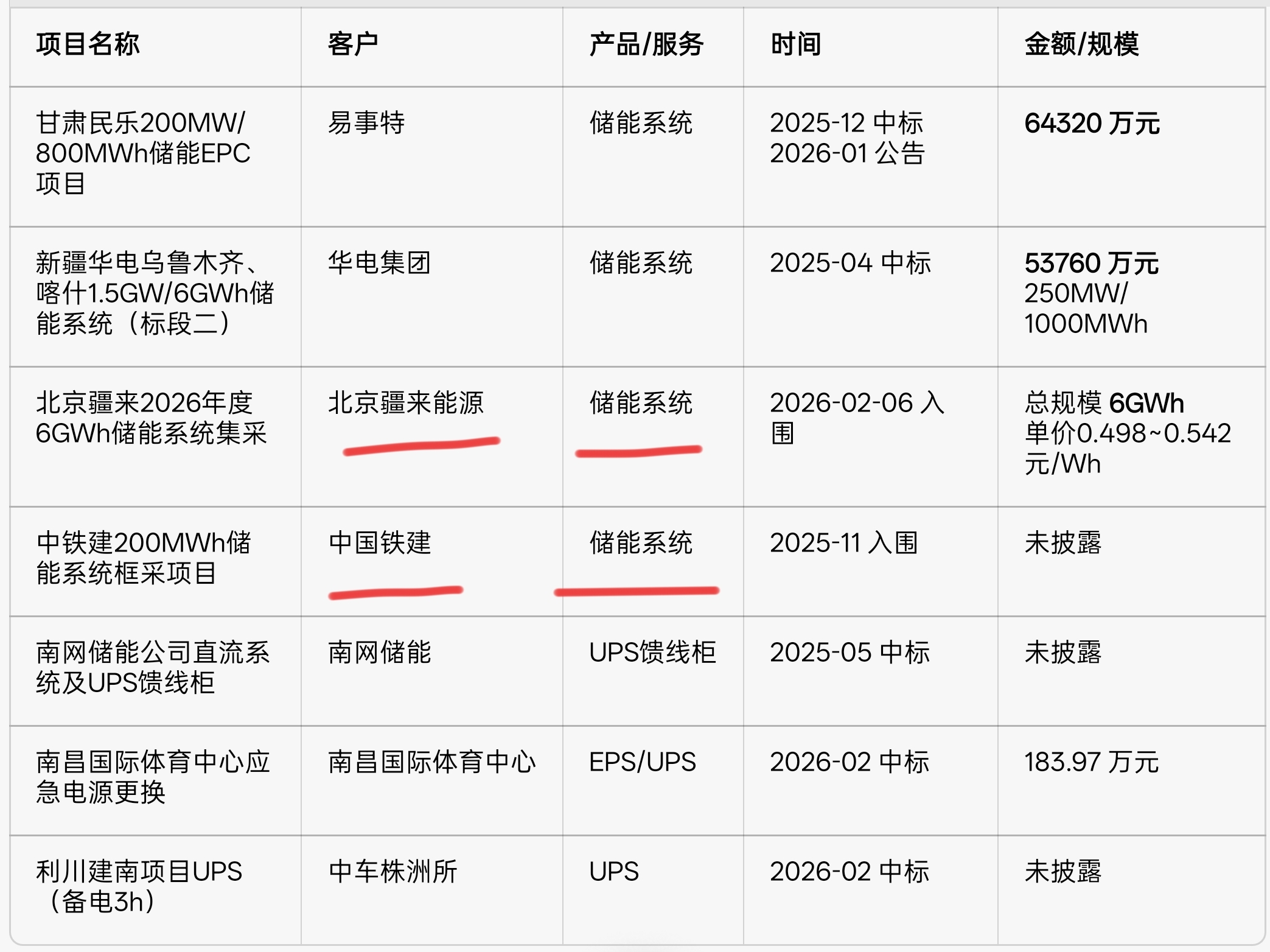 把我自己记得的一些项目稍微整理了一下,主要还是划线的两个储能系统。2026年,独