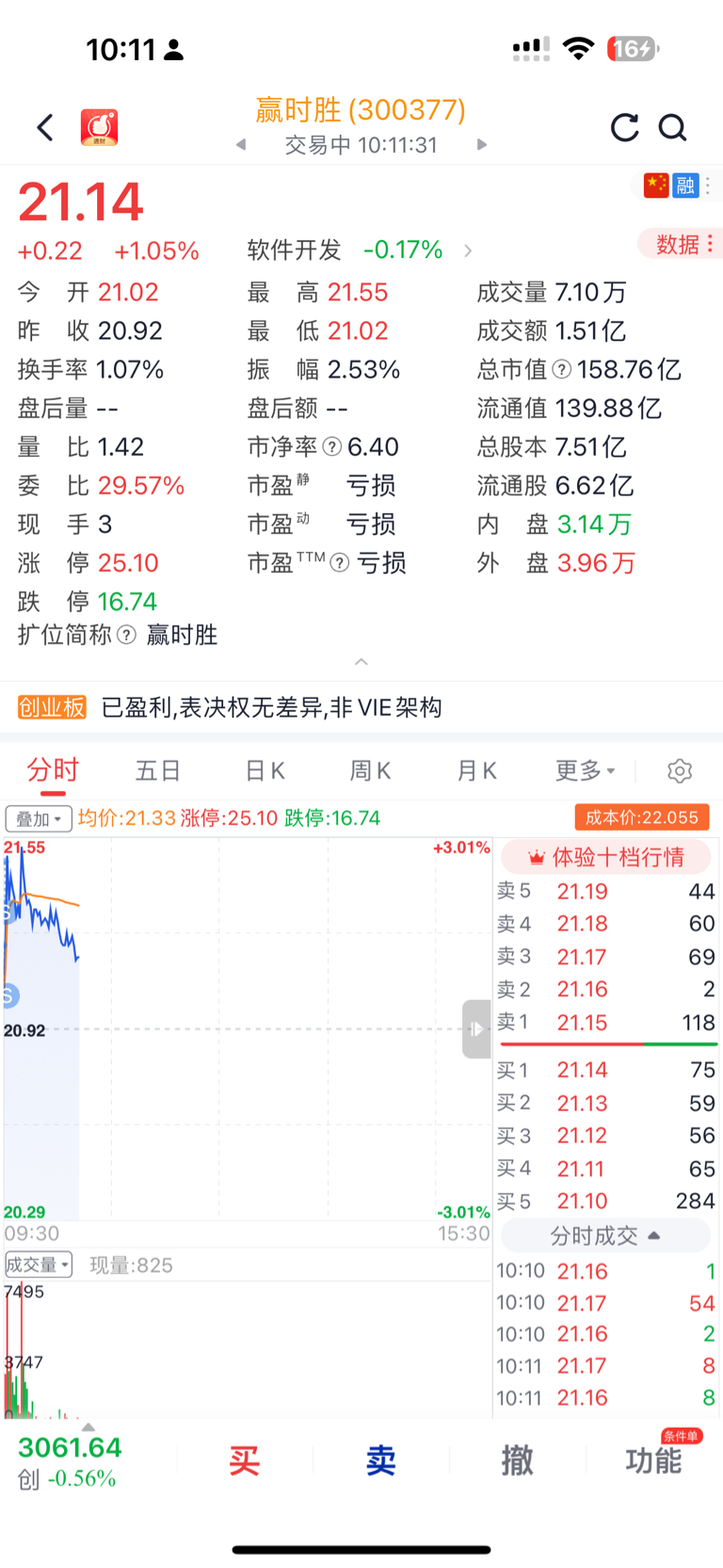 $赢时胜(SZ300377)$ 早盘猛涨割了1w股,成本上升接近30元,减持原因,等新低。