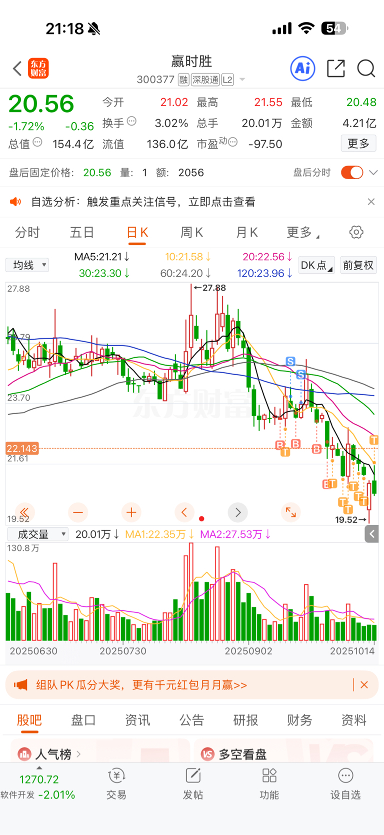$赢时胜(SZ300377)$ 什么时候是个头,什么时候让我解套