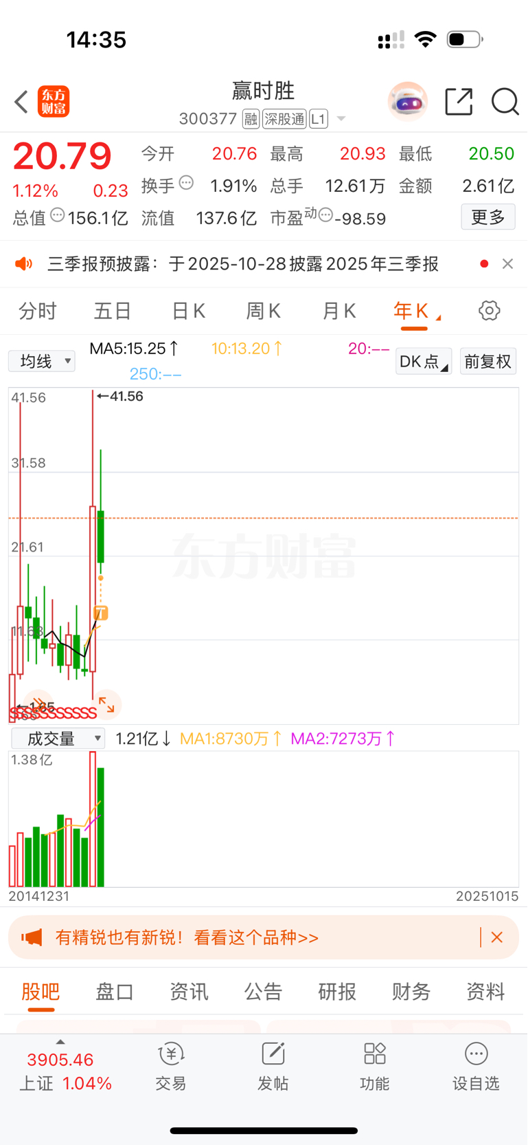 $赢时胜(SZ300377)$ 看年线,这个票有上70的潜质