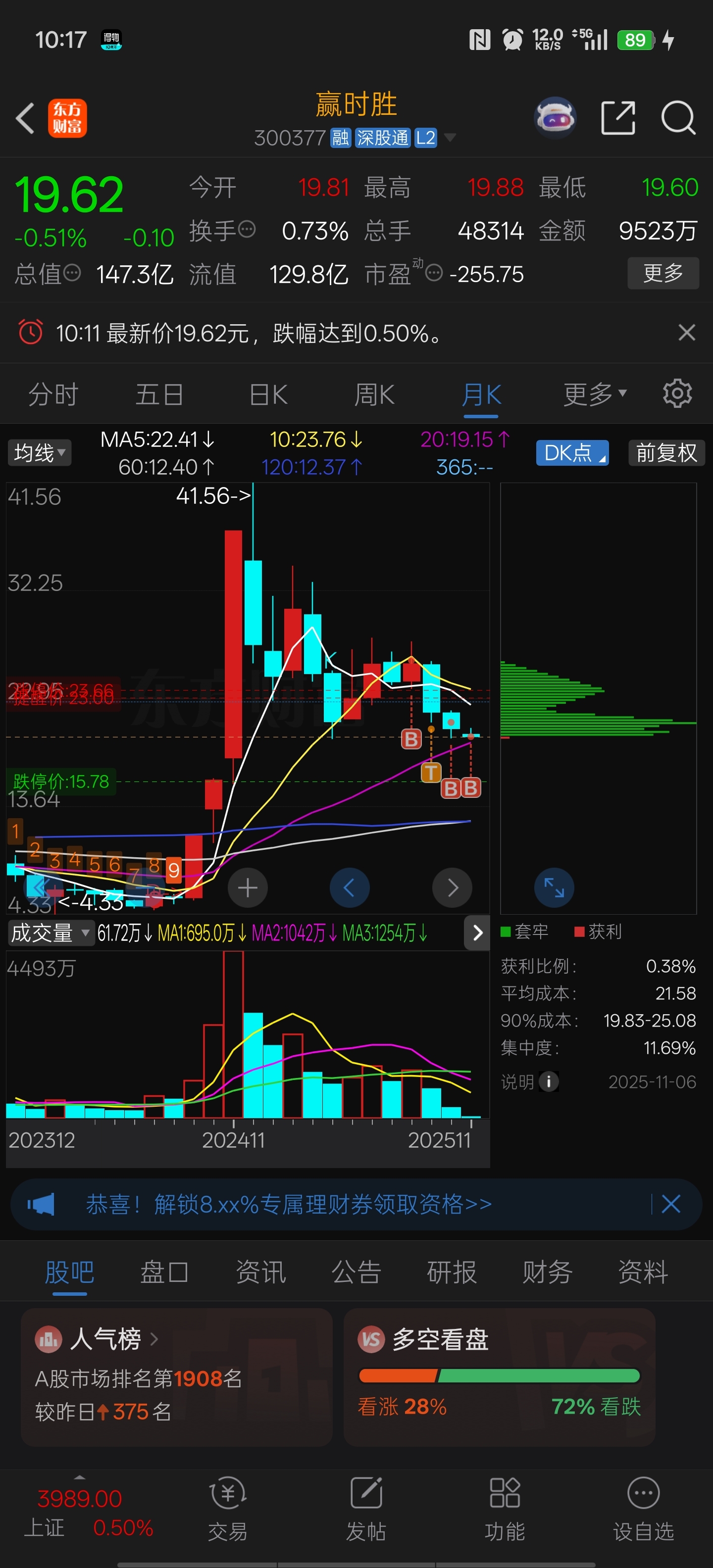 $赢时胜(SZ300377)$ 第四个月了,真惨啊,完美回避牛市
