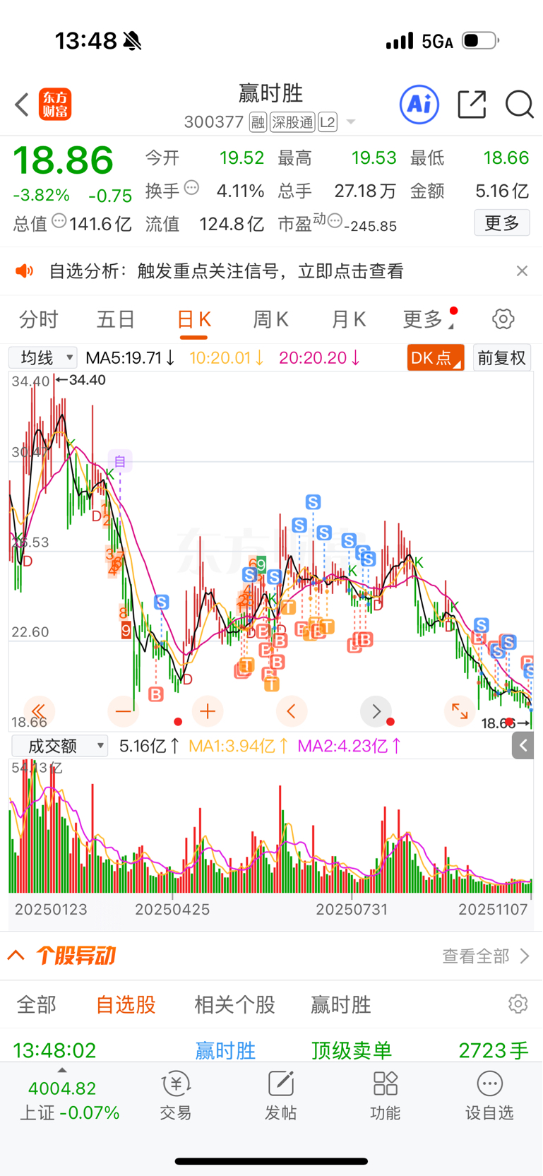 $赢时胜(SZ300377)$ 来一次亏一次,删除自选,给自己俩嘴巴!