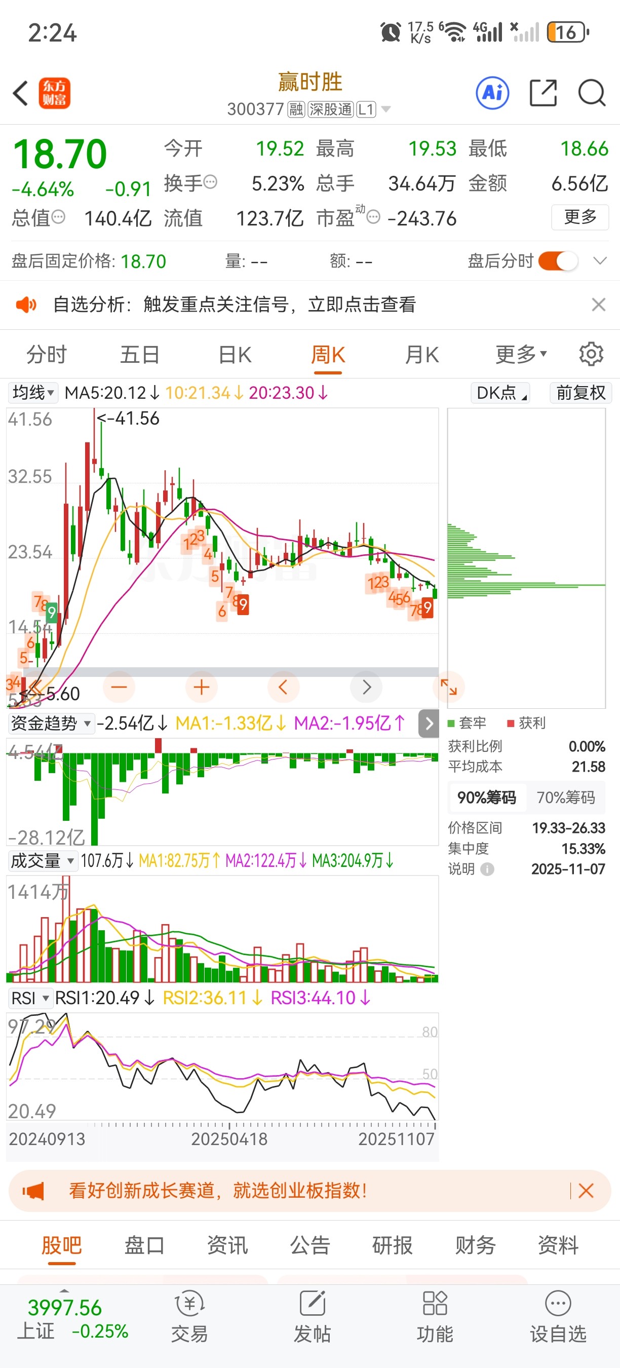 $赢时胜(SZ300377)$ 周一能反包吗?昨天没有利空多跌了两三个点,只能说砸盘的那三个亿很有可能是私募,因为恒生有高管在赢任董事比我们先知道,有承接但是不强,承接主力没有太多准备,如果像监管函那天提前做准备就是反包的局了,周一看企稳还是反包吧?主力看起来像是强弩之末了,他不进货拿什么砸呢?