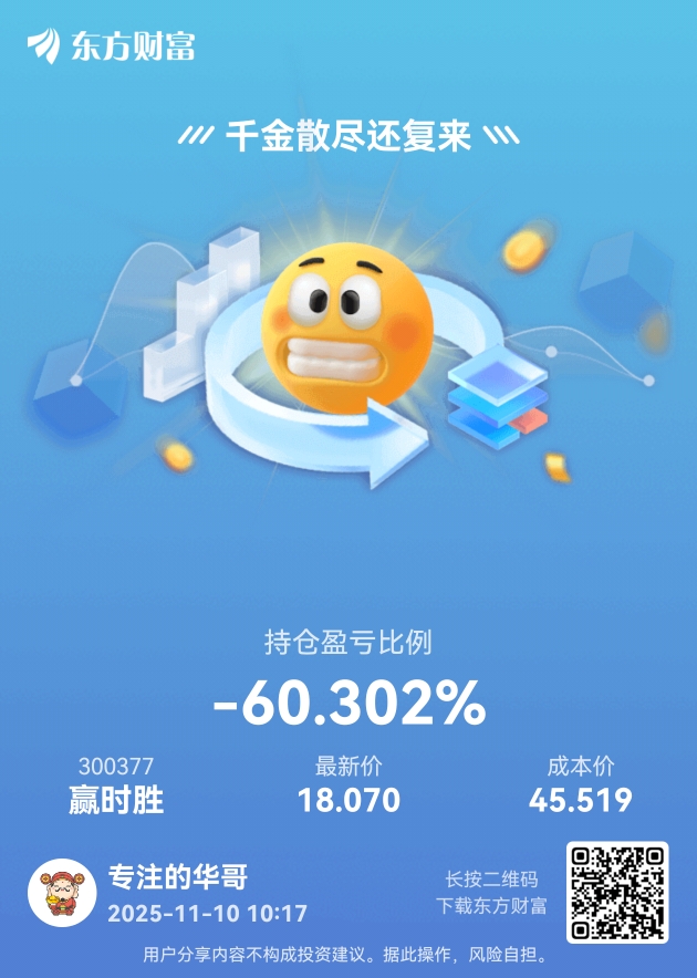 温馨提示: 1.根据《证券法》规定,禁止编造、传播虚假信息或者误导性信息,扰乱证券市场;2.用户在本社区发表的所有资料、言论等仅代表个人观点,与本网站立场无关,不对您构成任何投资建议。用户应基于自己的独立判断,自行决定证券投资并承担相应风险。《东方财富社区管理规定》