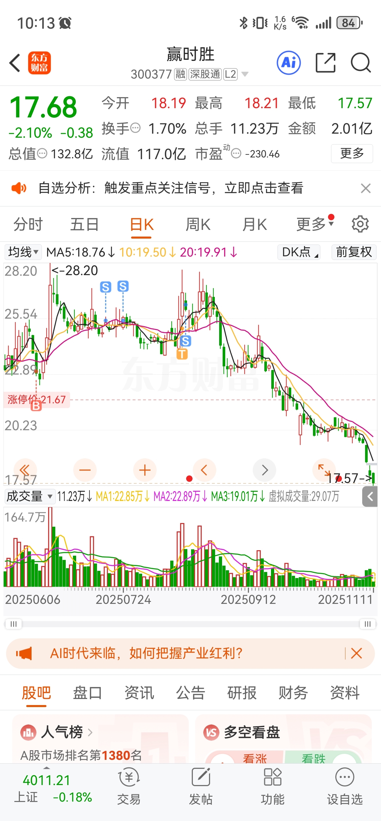 $赢时胜(SZ300377)$ 回来一看,还好跑的早