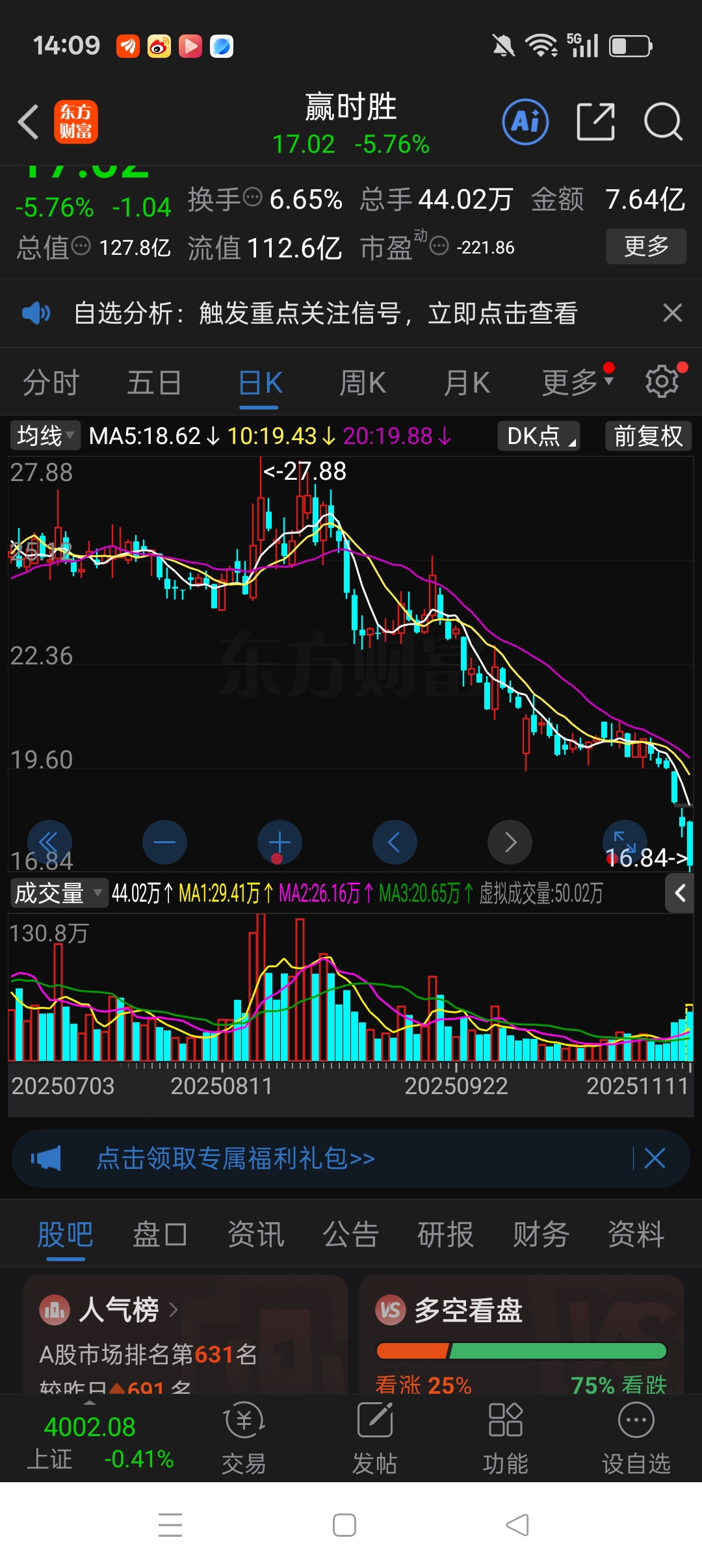 $赢时胜(SZ300377)$ 明天低开低走,13块见!
