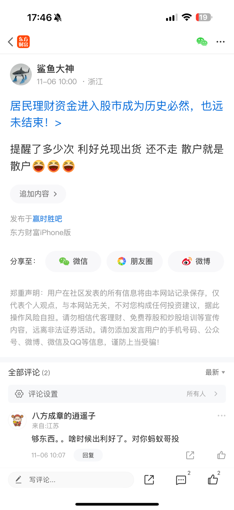 温馨提示: 1.根据《证券法》规定,禁止编造、传播虚假信息或者误导性信息,扰乱证券市场;2.用户在本社区发表的所有资料、言论等仅代表个人观点,与本网站立场无关,不对您构成任何投资建议。用户应基于自己的独立判断,自行决定证券投资并承担相应风险。《东方财富社区管理规定》