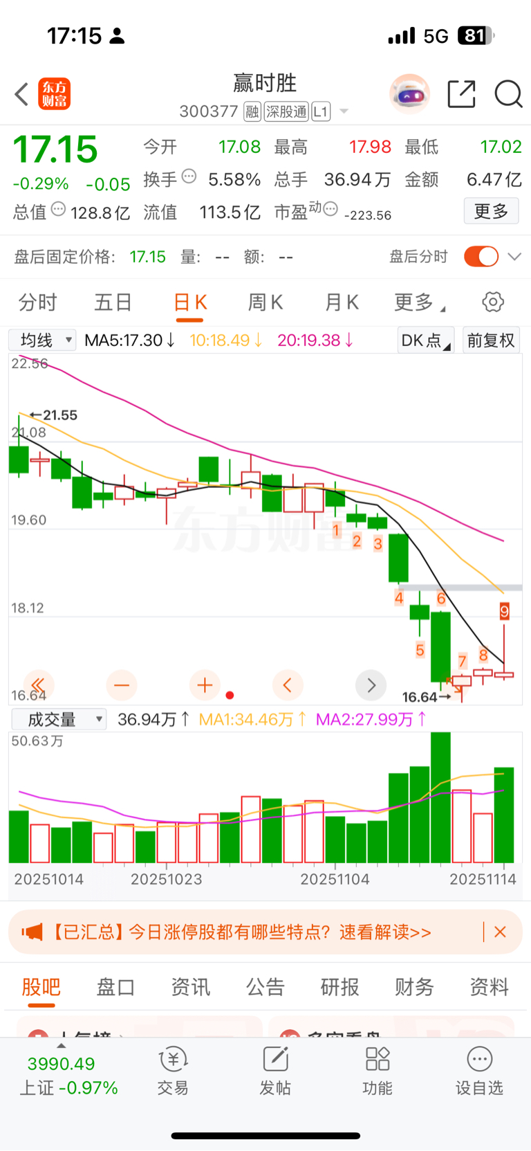 $赢时胜(SZ300377)$ K线已出现九转信号,是陷阱还是馅饼?