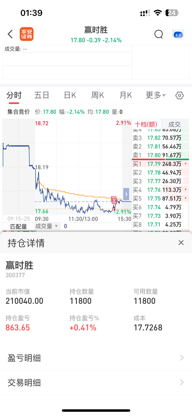 $赢时胜(SZ300377)$ 建个仓,请问各位股东成本多少?