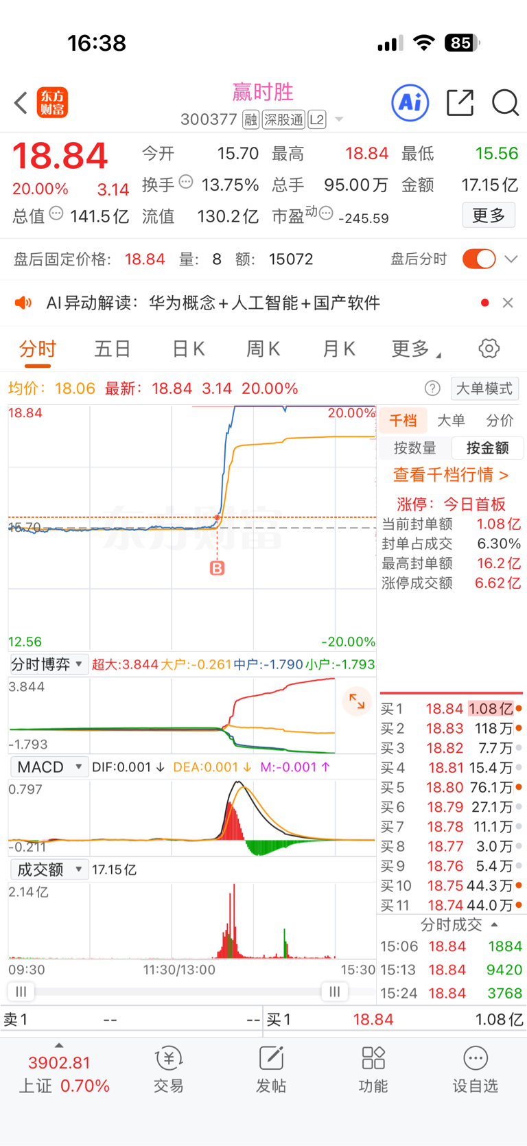 $赢时胜(SZ300377)$ 运气好