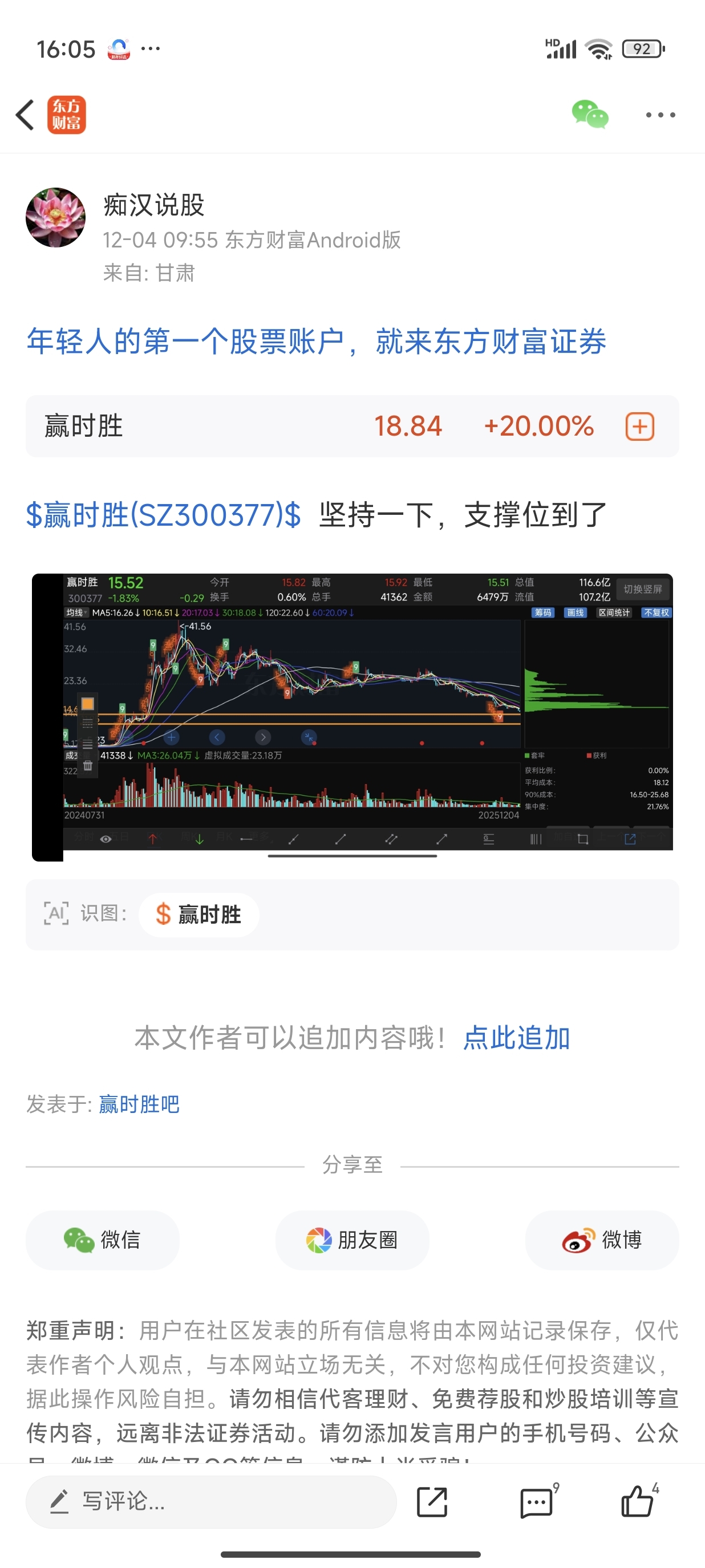 温馨提示: 1.根据《证券法》规定,禁止编造、传播虚假信息或者误导性信息,扰乱证券市场;2.用户在本社区发表的所有资料、言论等仅代表个人观点,与本网站立场无关,不对您构成任何投资建议。用户应基于自己的独立判断,自行决定证券投资并承担相应风险。《东方财富社区管理规定》