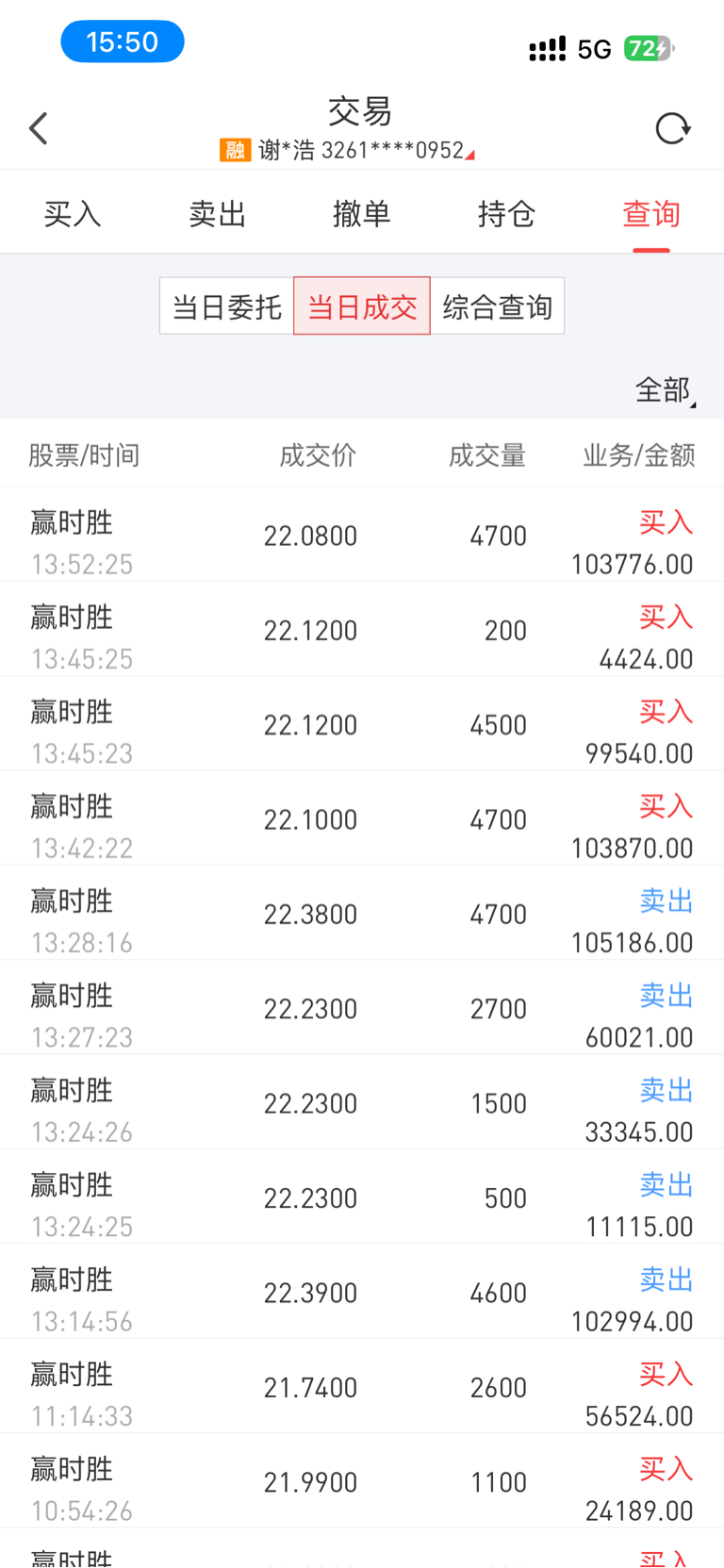 $赢时胜(SZ300377)$ 有了$航天科技(SZ000901)$ 惨痛T飞20几个点教训,主升浪时做t有低价一定得当天接回