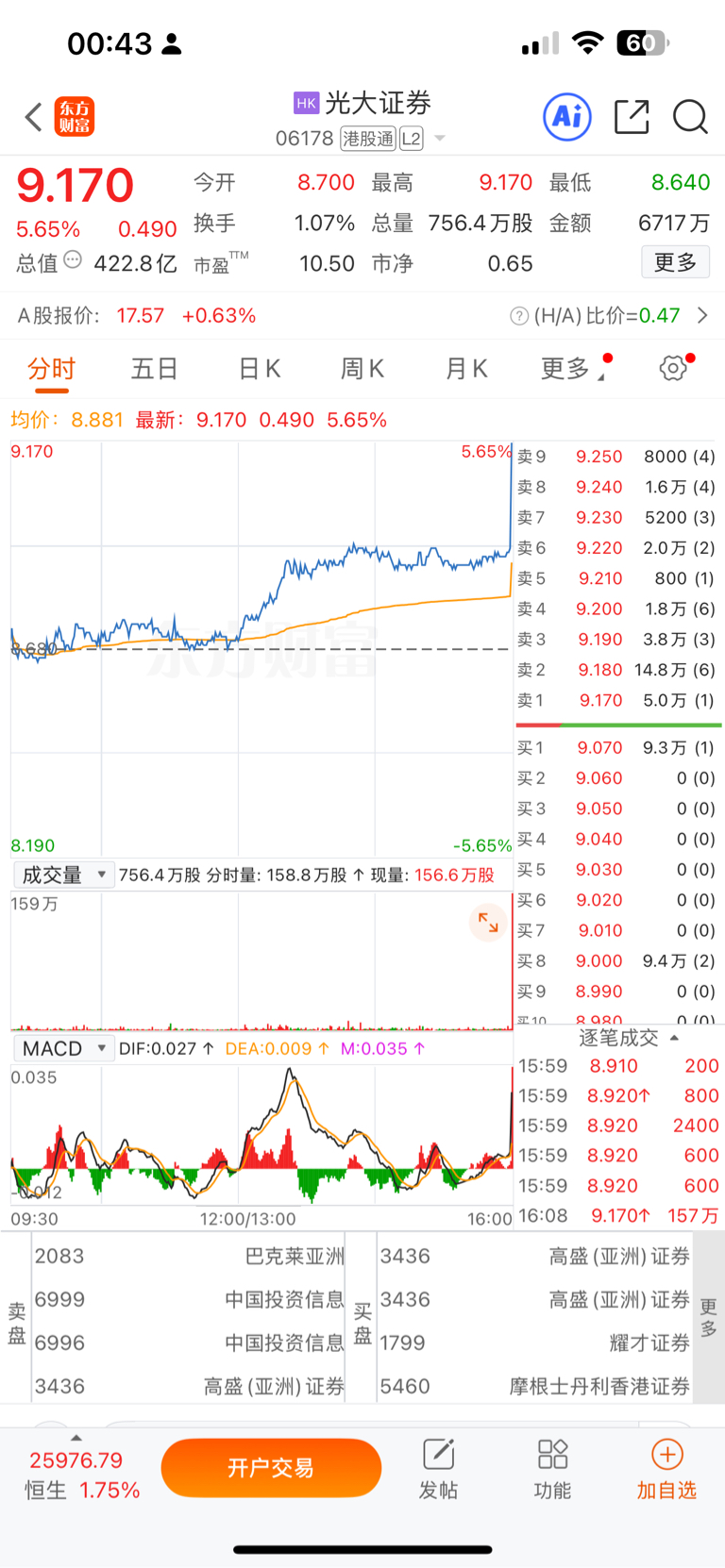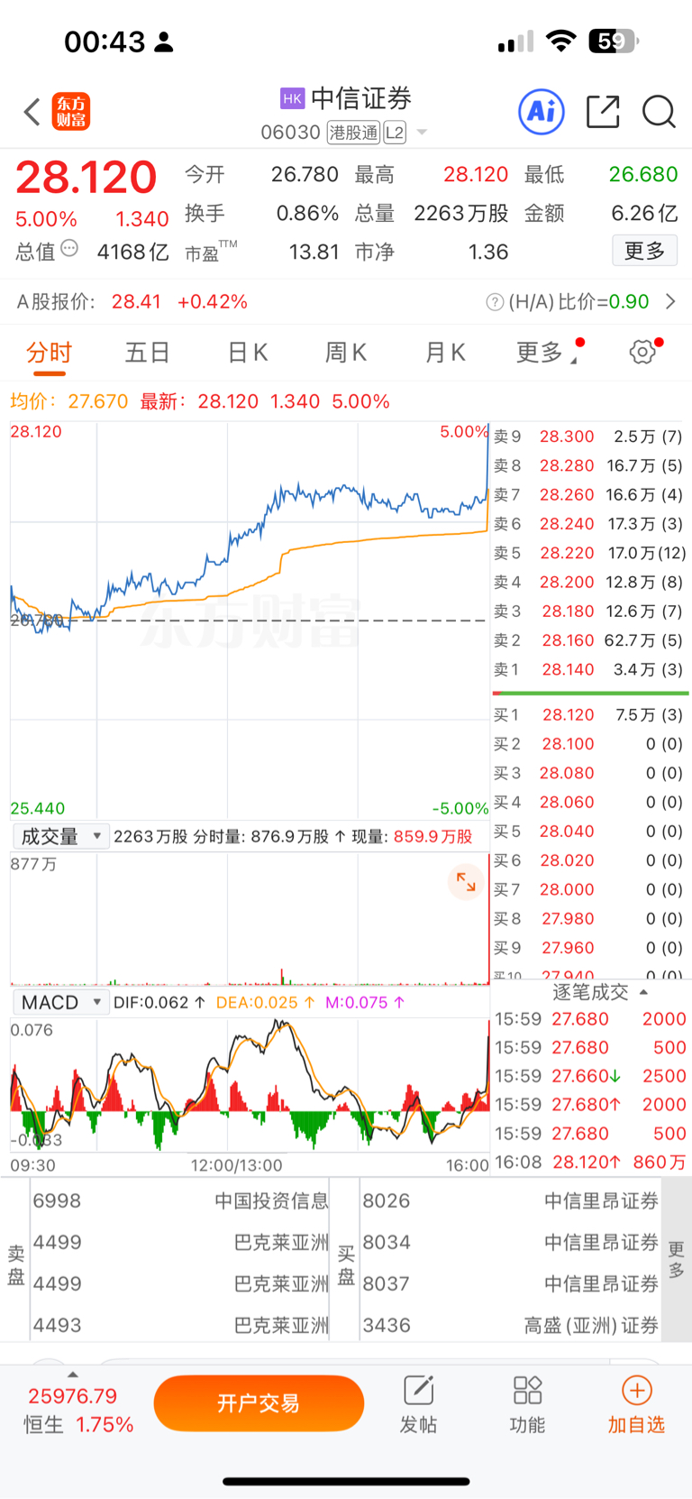 周五港股券商集体尾盘直线上升跳开,下周券商值得注意