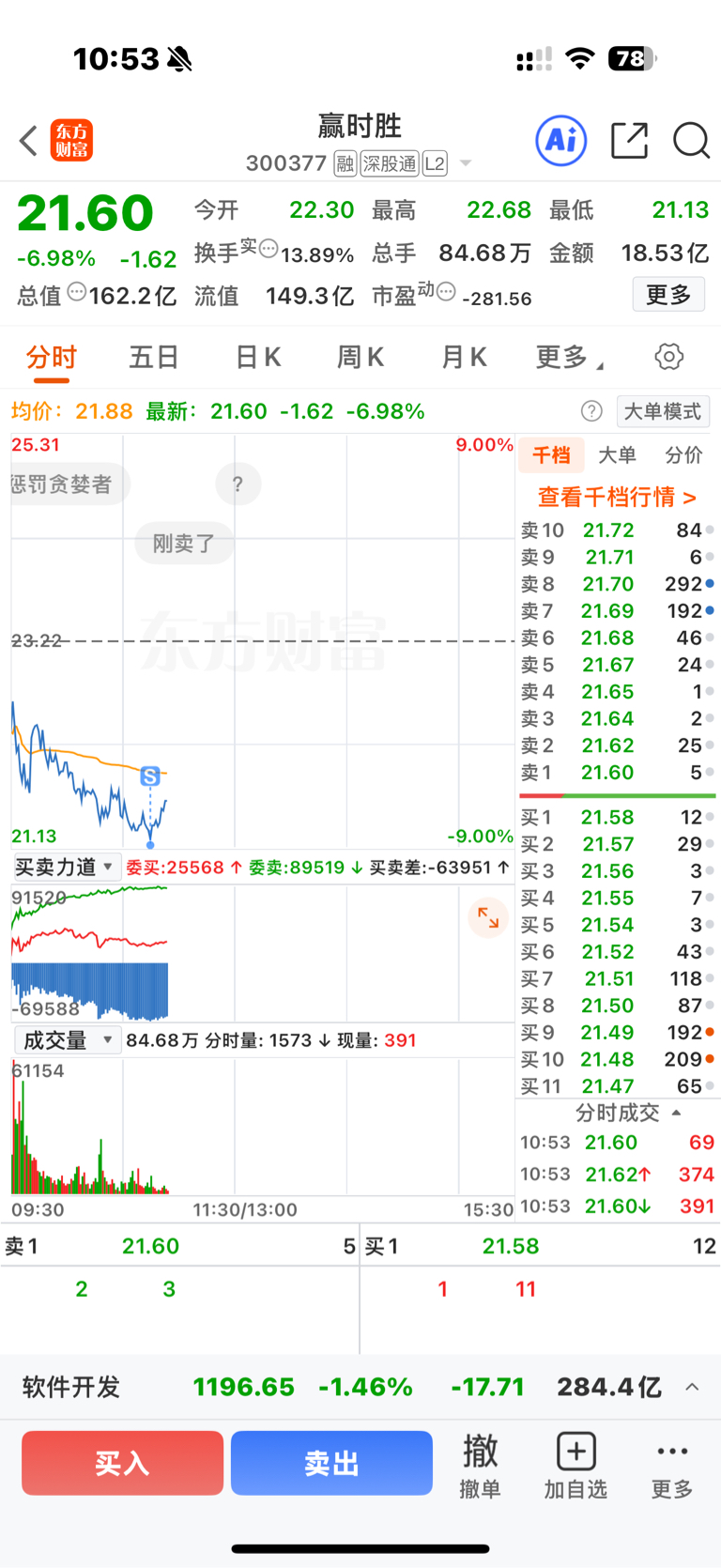 $赢时胜(SZ300377)$ 什么水平?昨天最高点入的