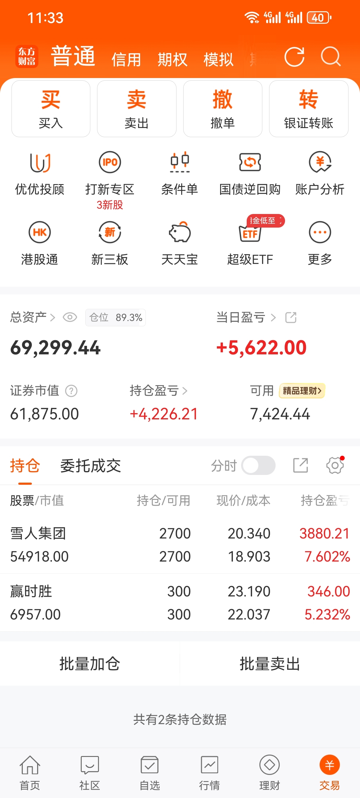 早上雪人诈板的时候,想清仓卖掉买你,然后就犹豫犹豫,结果一根直线拉的太快,就眼睁