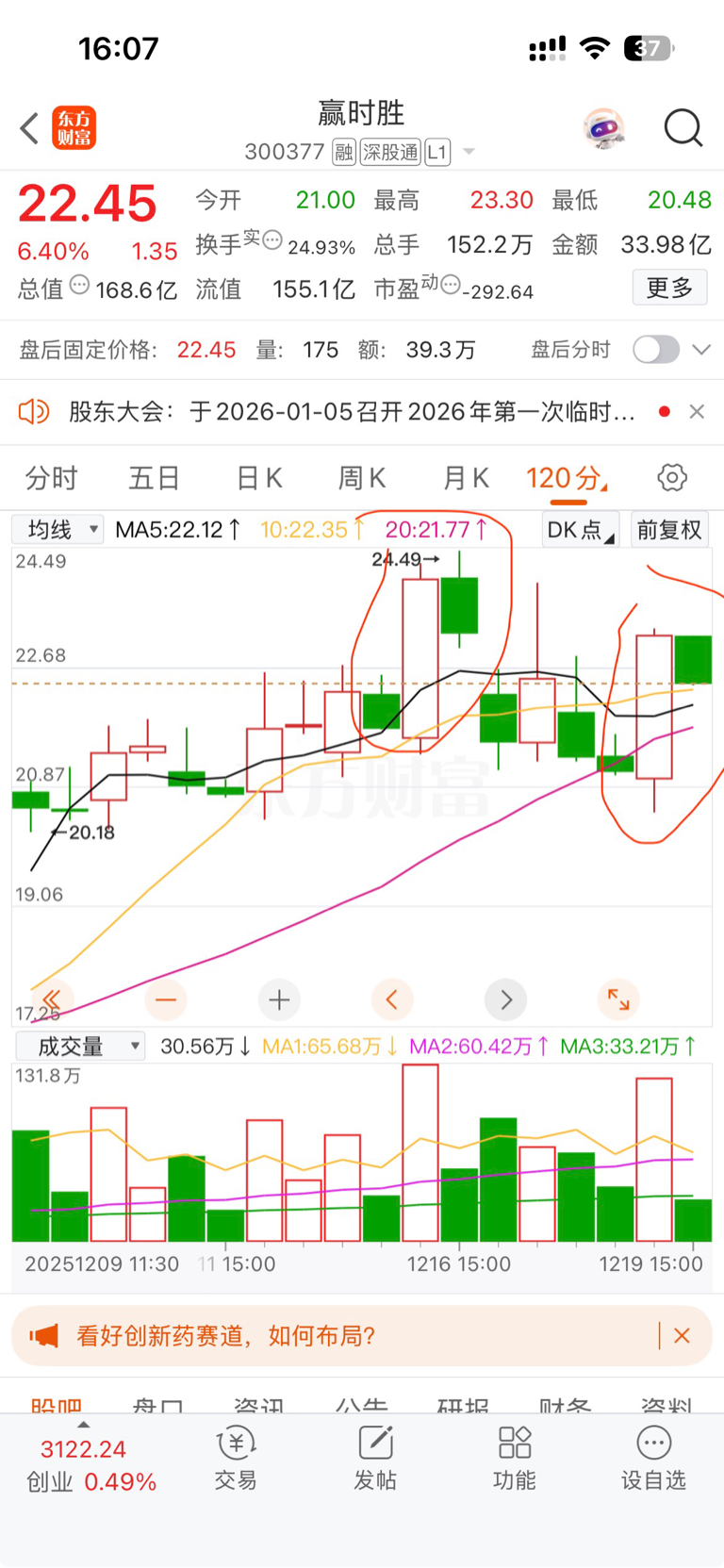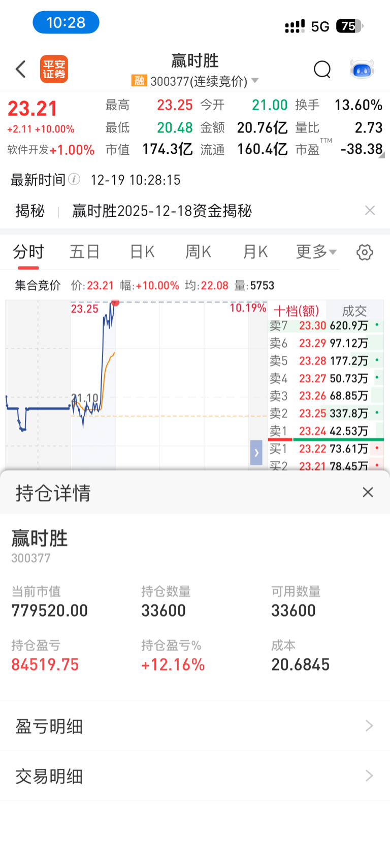 $赢时胜(SZ300377)$ 格局了一天,跳水两万五利润~继续保持本月收实体阳线观点不变成,要么冲过25,要么再次跌到20出头让我下定决心满仓单吊