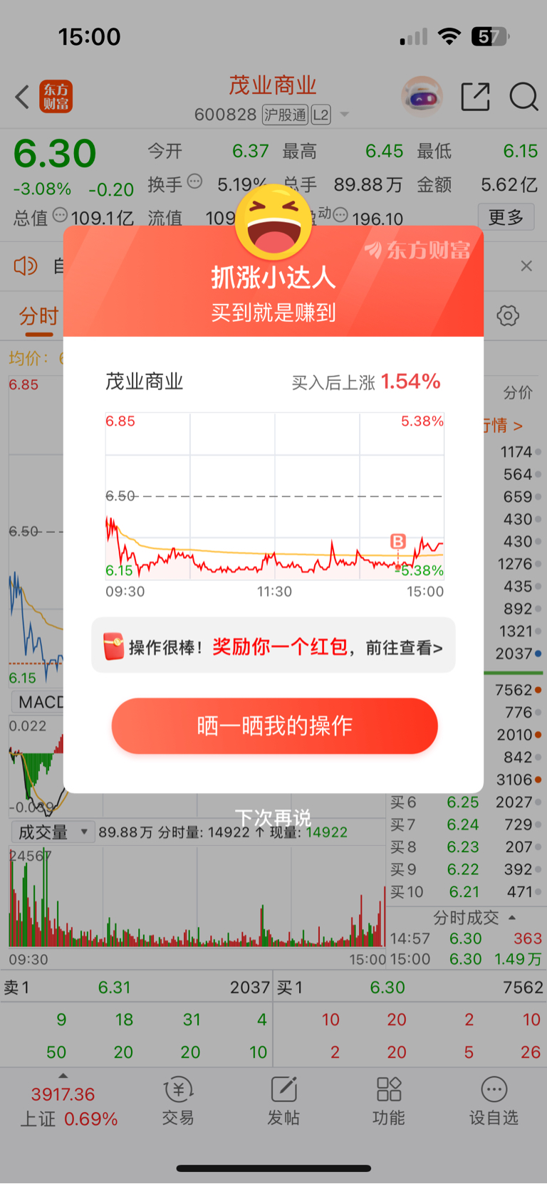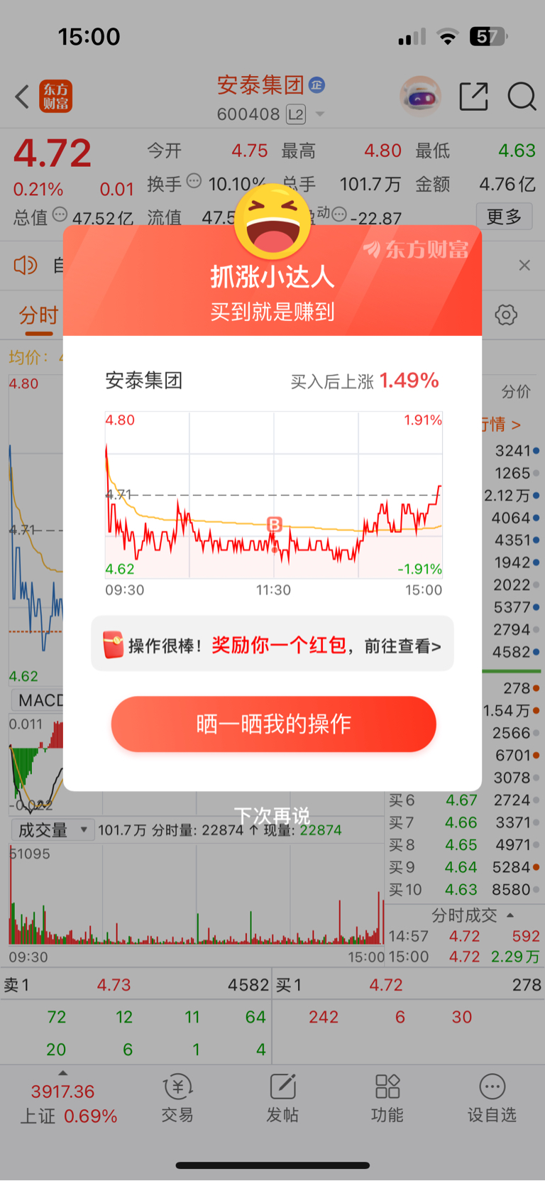 15万炒股(第21天)止盈赢时胜。尾盘新开仓:安泰集团,顺灏科技,茂业商业。每日