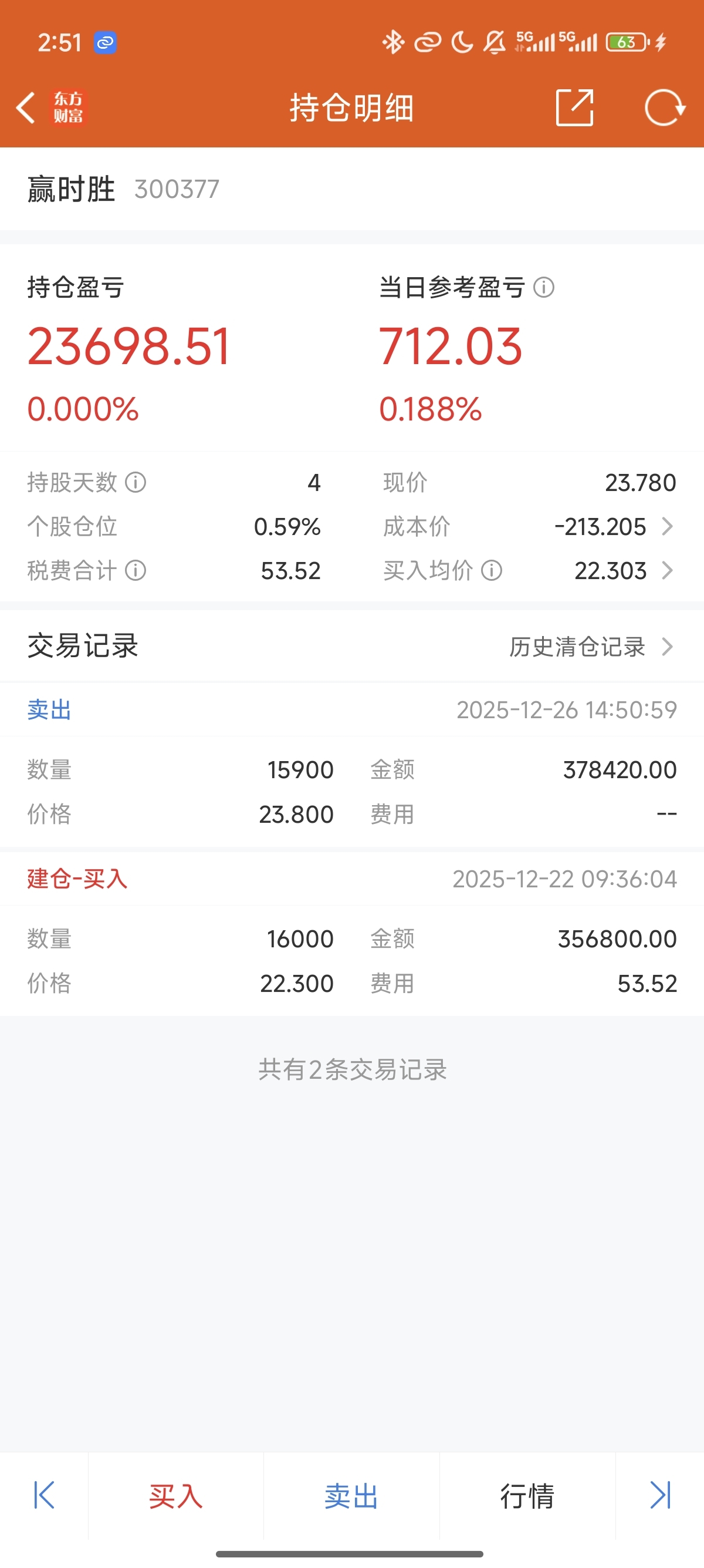 $赢时胜(SZ300377)$ 卖了,下周跌到23接回