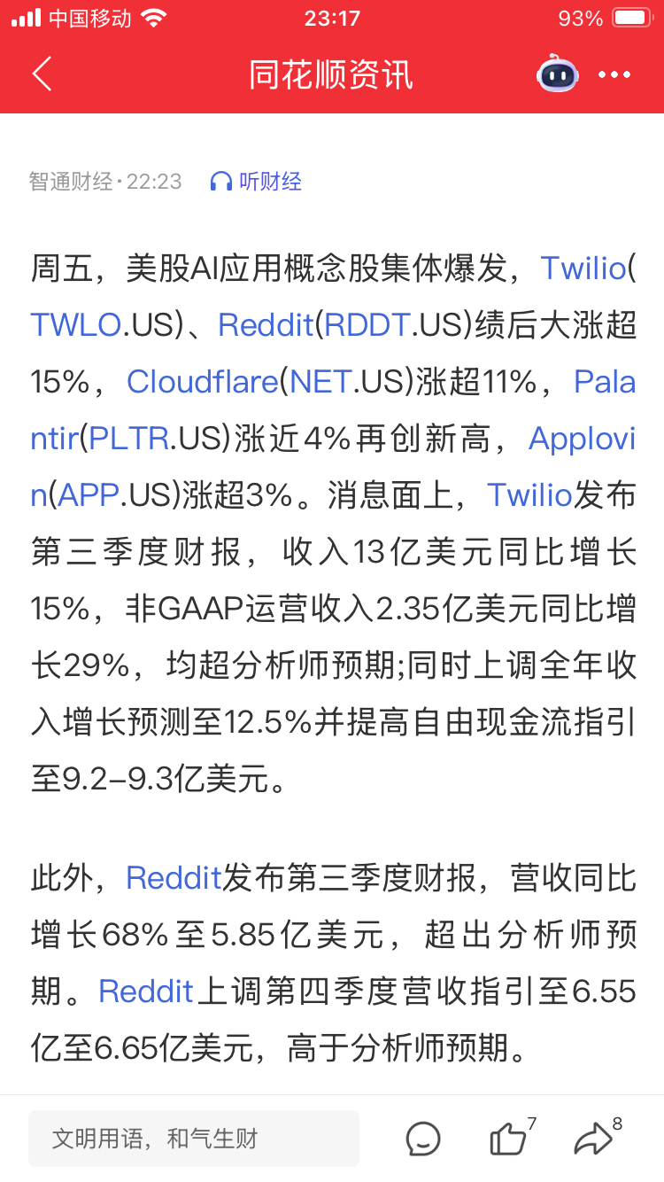 $鼎捷数智(SZ300378)$ 美股Ai应用全部在飙车,看周一跟大A有没有关系了!