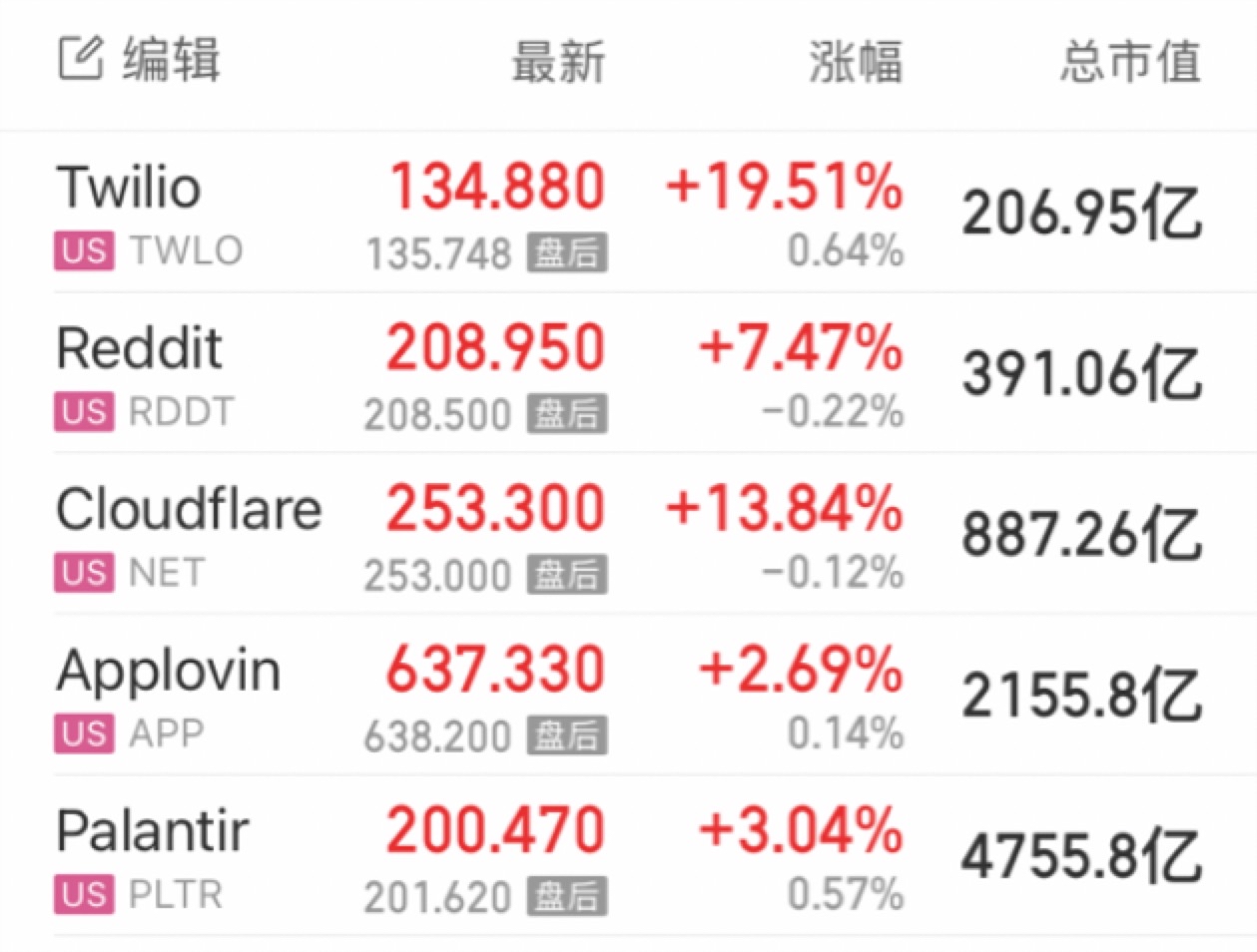 YY一下美股这几只Ai应用龙头昨晚因业绩超预期大涨映射大A下周Ai应用的炒作