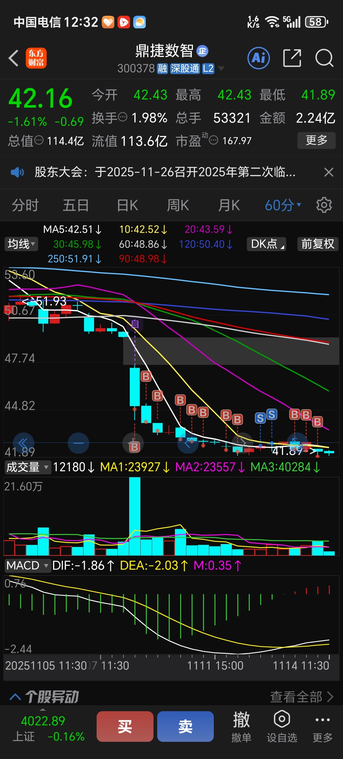 $鼎捷数智(SZ300378)$ 下跌趋势的票真的不能买,也不能连续的补,现在全部被套牢了,下周一又是解禁。真的害怕今天下午尾盘再杀一波,周一再开盘大跌就完蛋。