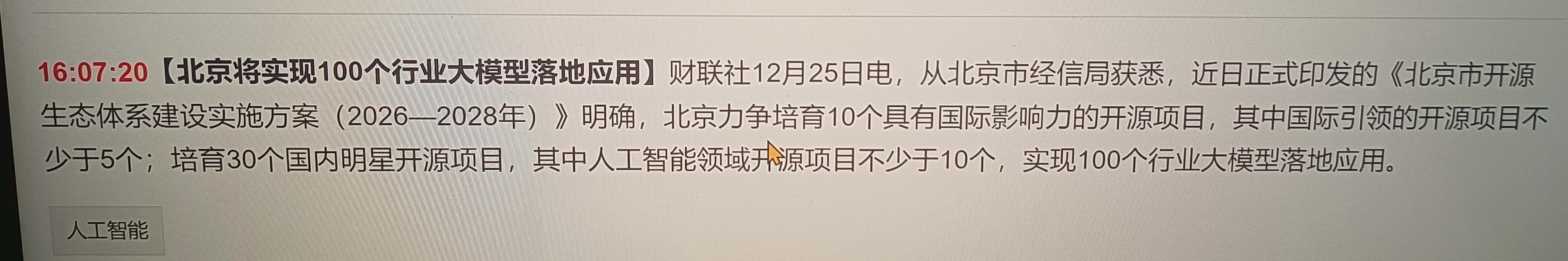 北京将实现100个行业大模型落地应用