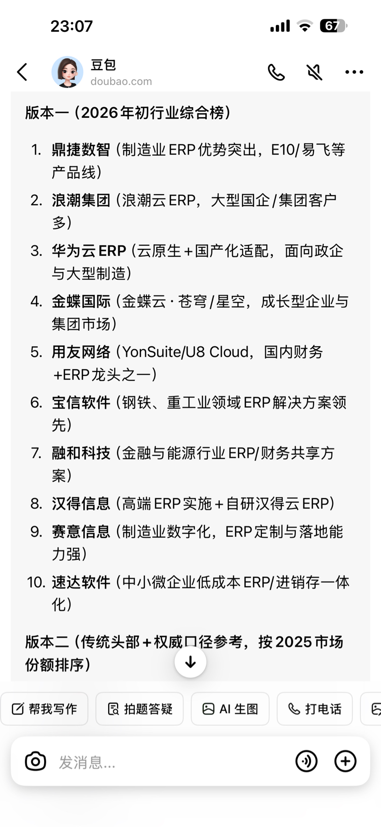晚上看了丁姐官网,其主营业务就是ERP。不能和蓝色和每日,化为一类。这个榜单才是