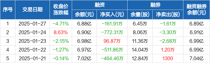 东方通:融资净偿还161.91万元,融资余额6.88亿元(01-27)