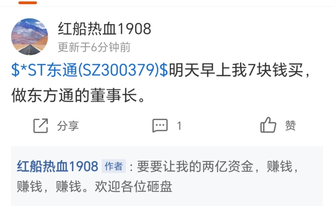 $*ST东通(SZ300379)$ 怎么来了个蛇精病