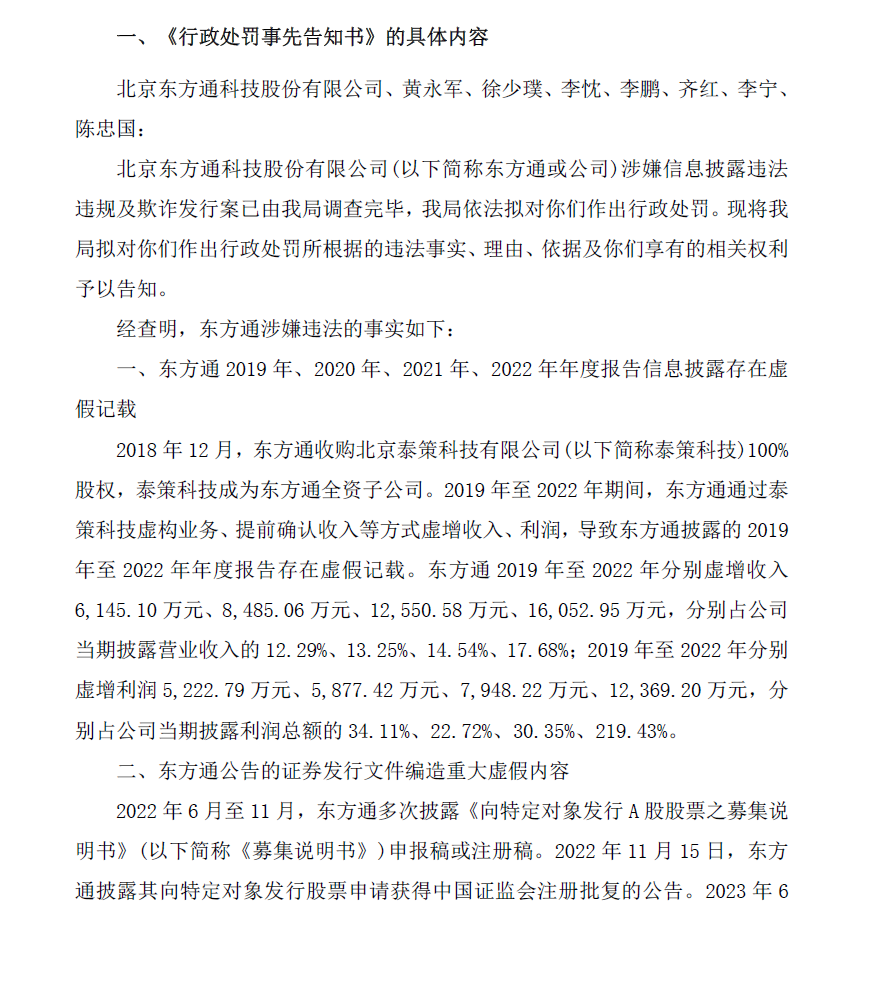 东方通索赔登记。收预处罚,连续四年大比例虚增营收利润,触及重大违法退市,只待正式