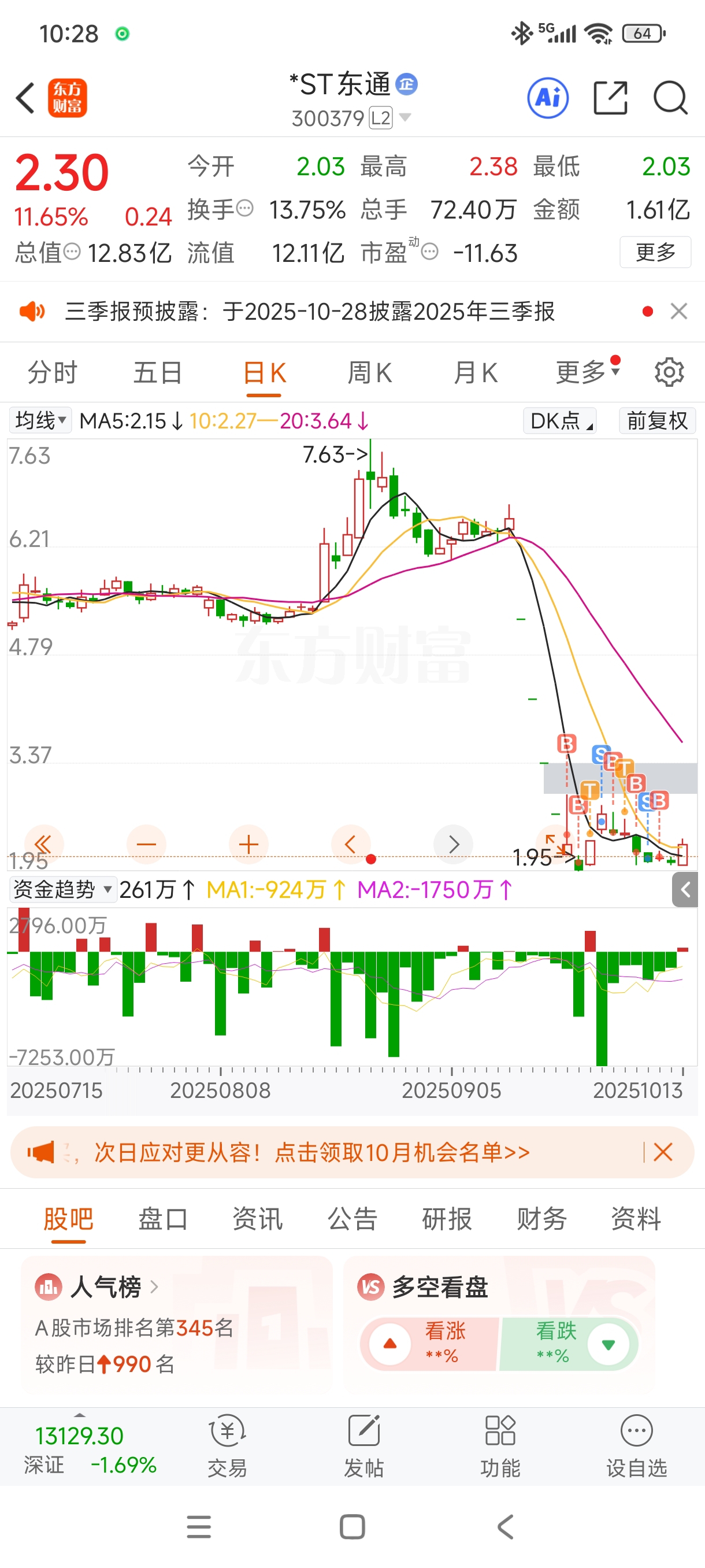 $*ST东通(SZ300379)$ 没动,感谢主力